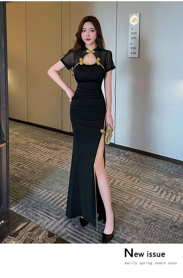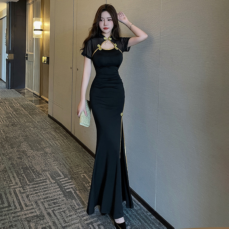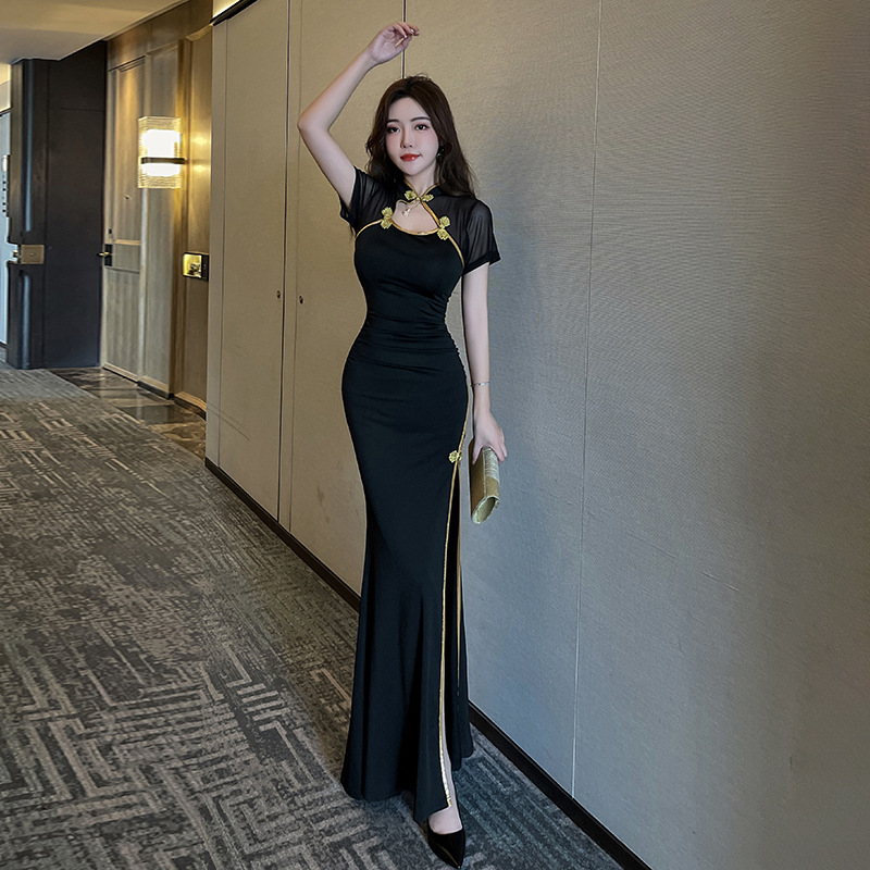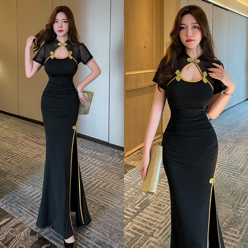 Сексуальная ночной клуб платье длинное платье для женщин Лето Новый элегантный леди с высоким разрезом сауна вечернее платье высокое чувство