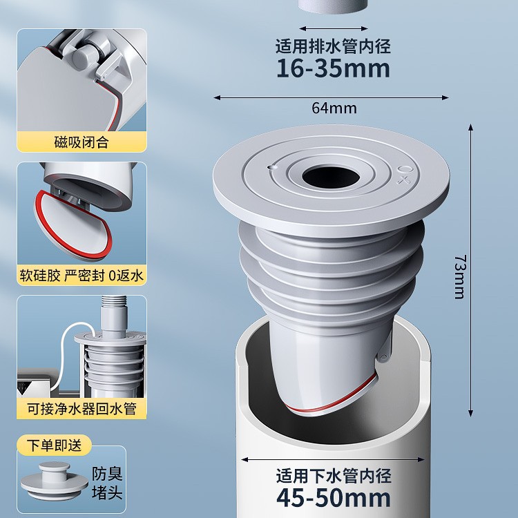 Кухонный сливной слив уплотнительная пробка стиральная машина дренажная труба 5075 уплотнительная крышка Силиконовое кольцо дезодорант заглушка артефакт