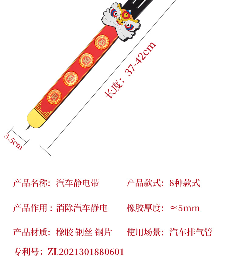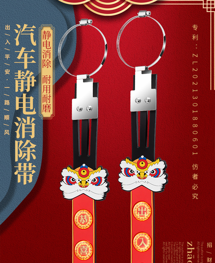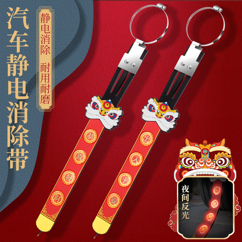 2024 автомобиль электростатический ремень с головой льва Новогодний праздничный электростатический ремень для въезда и выезда безопасный автомобиль Электростатический артефакт для удаления Универсальный