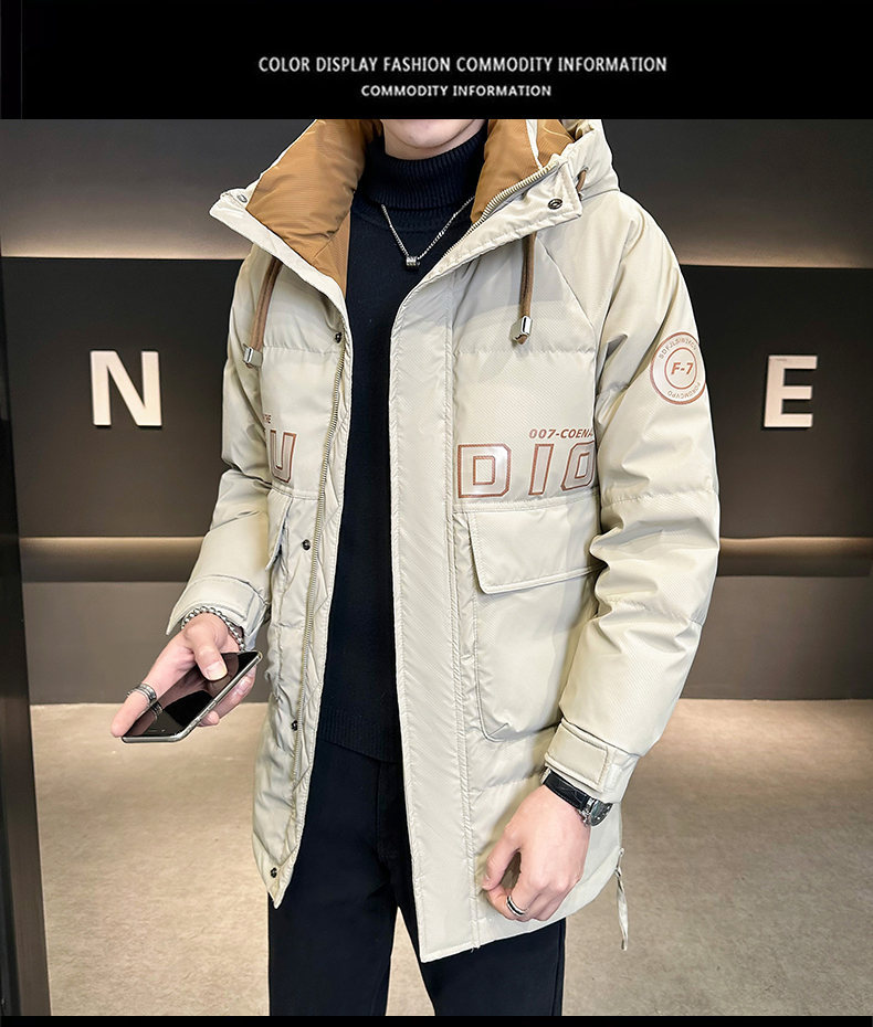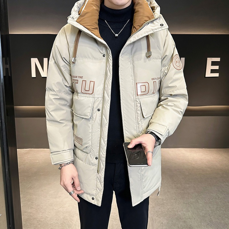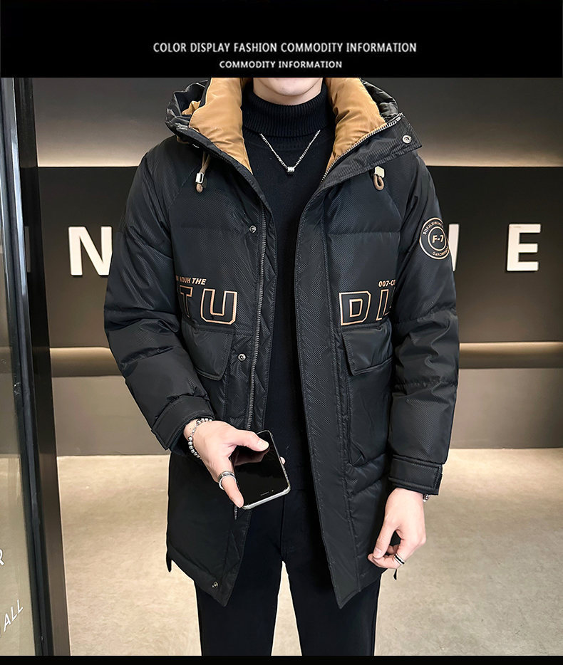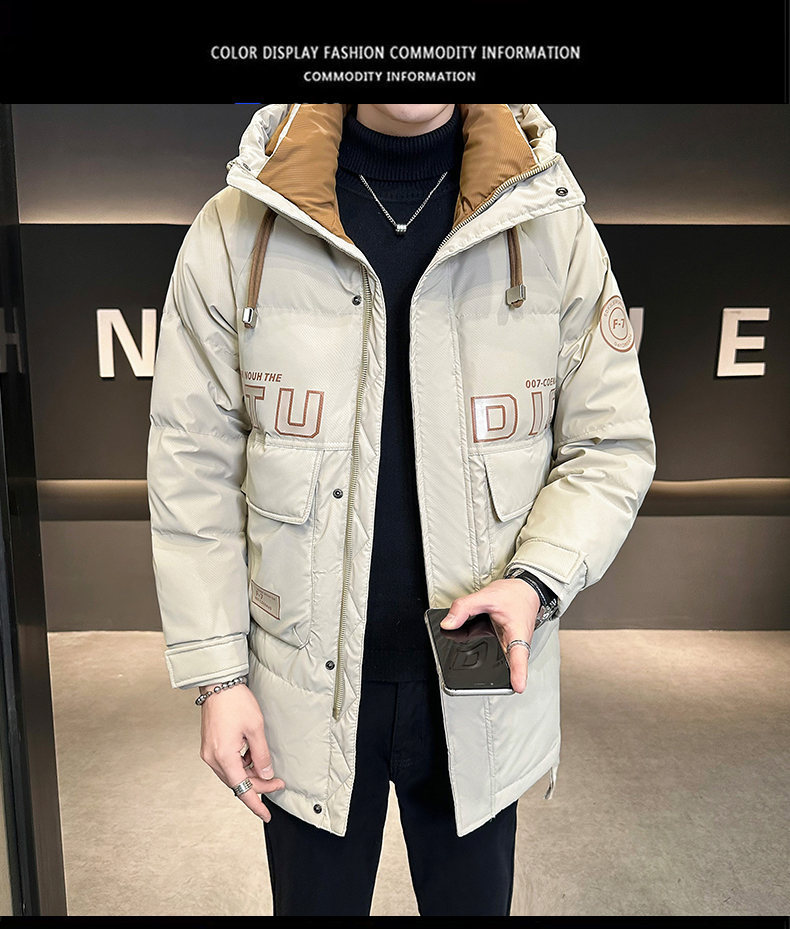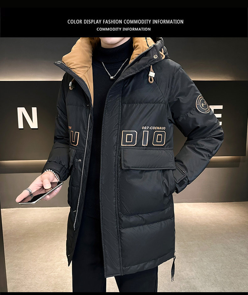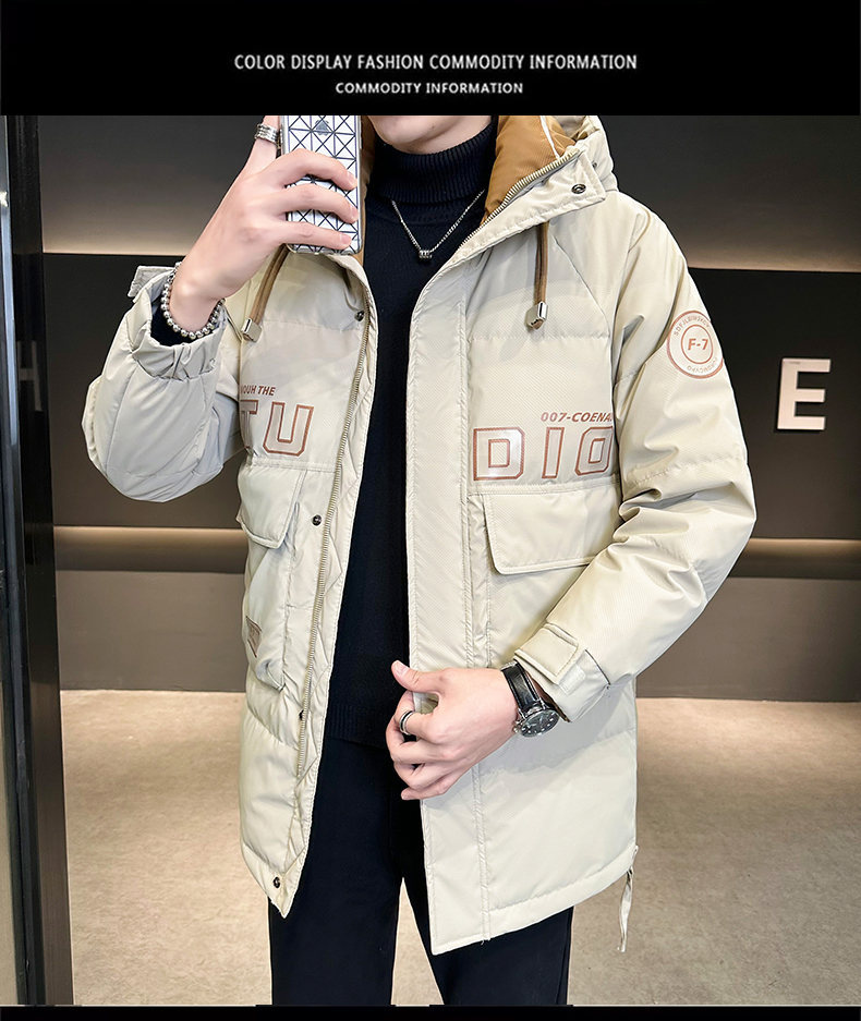 Популярное основное зимнее пальто с капюшоном в стиле лавочника, мужской пуховик средней длины с принтом 20208x6819