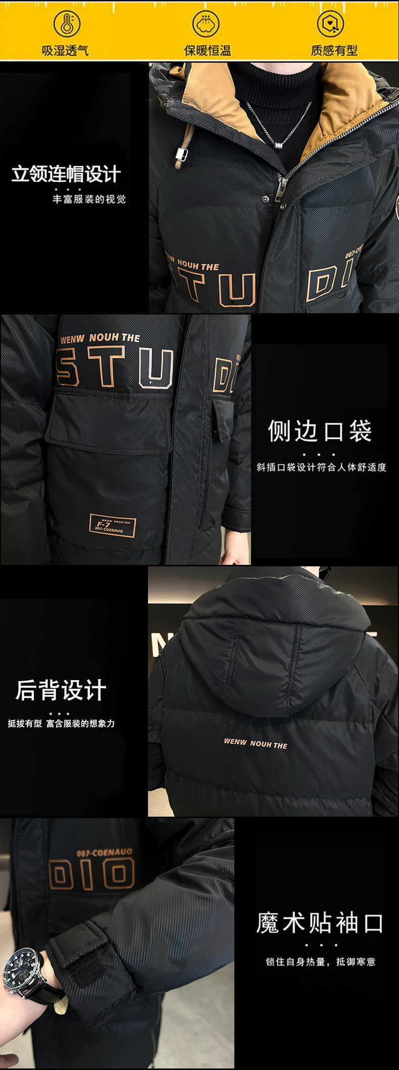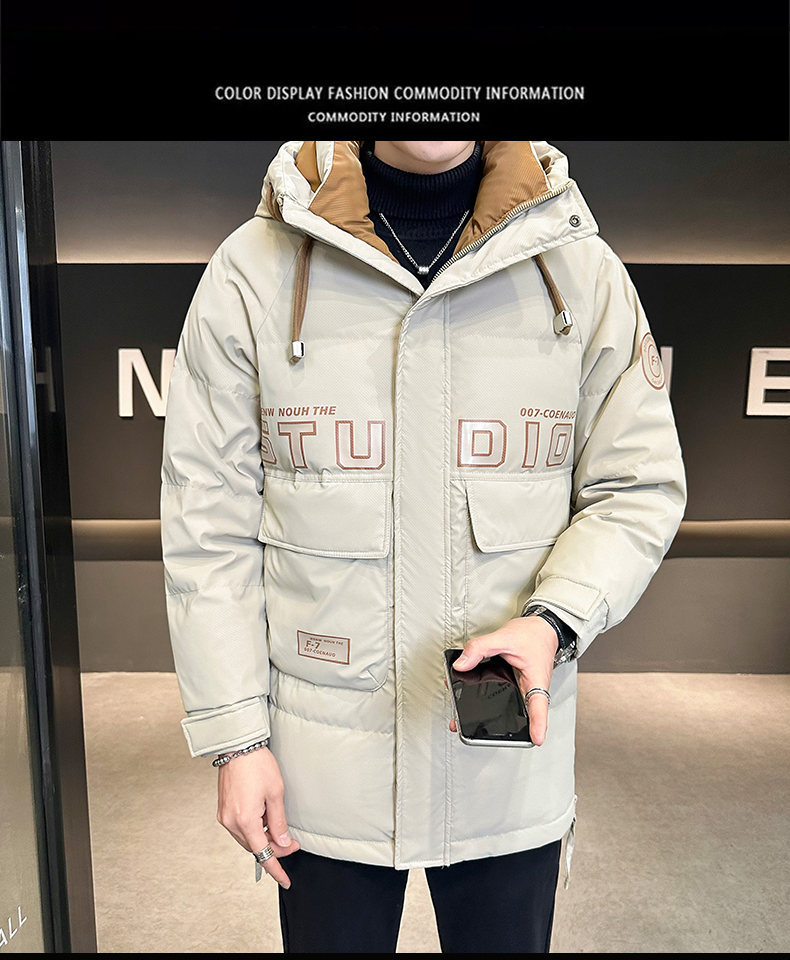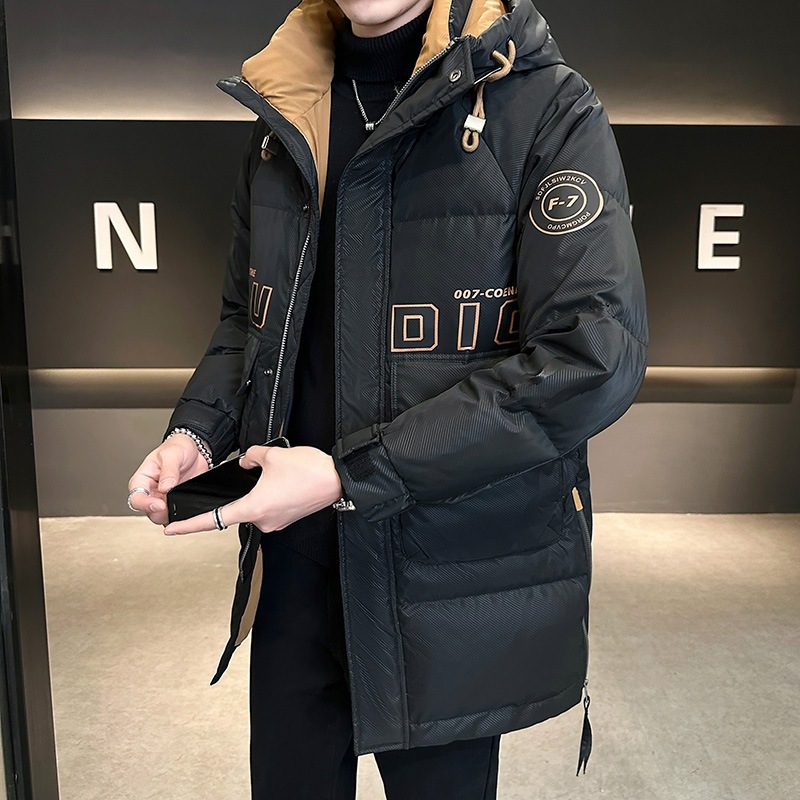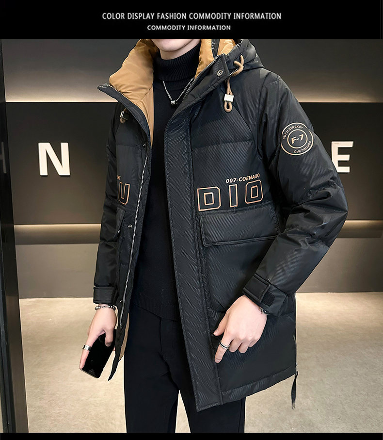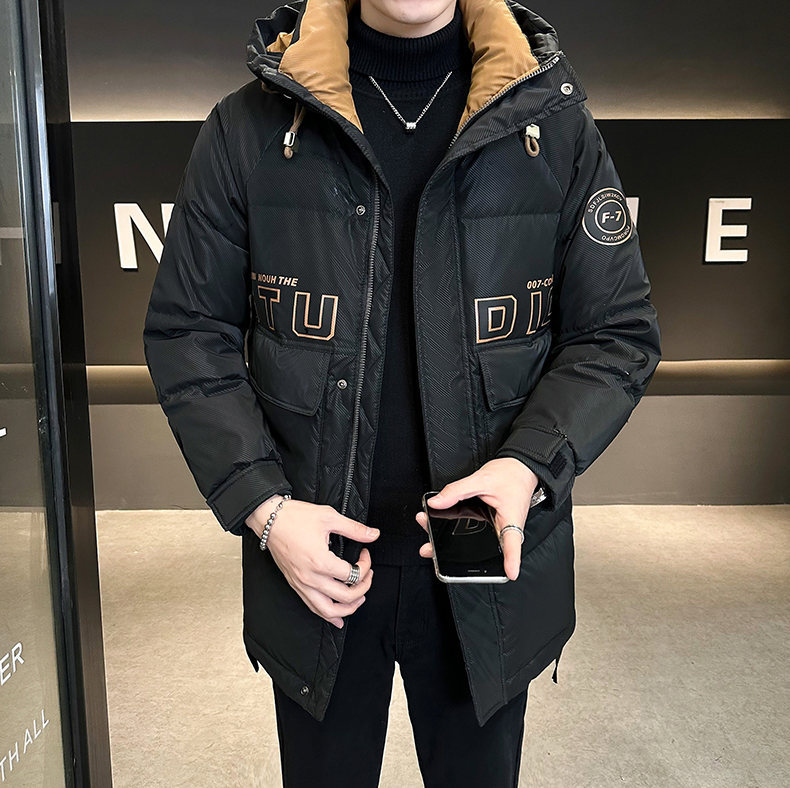 Популярное основное зимнее пальто с капюшоном в стиле лавочника, мужской пуховик средней длины с принтом 20208x6819