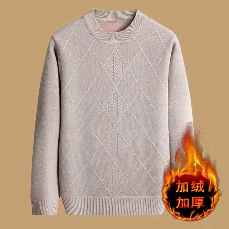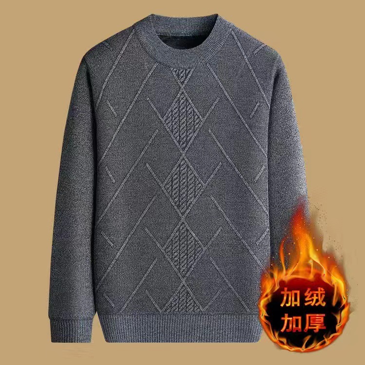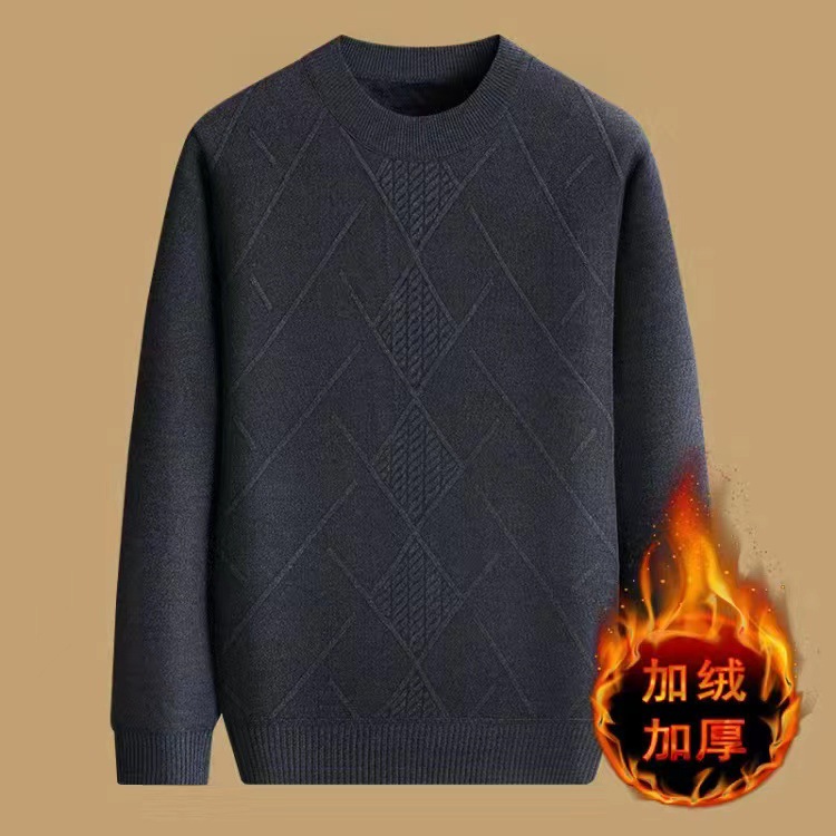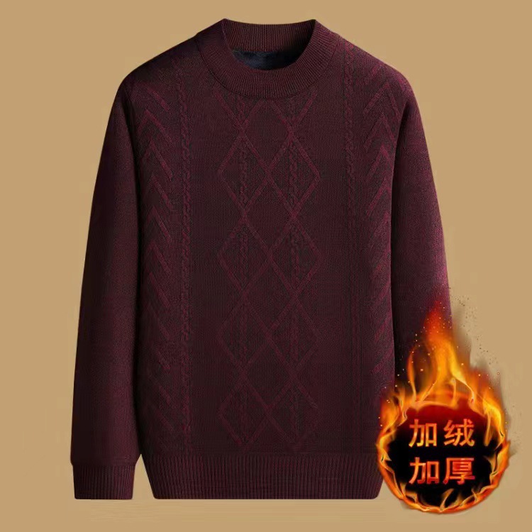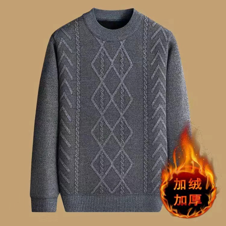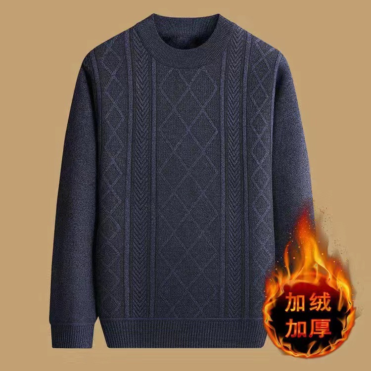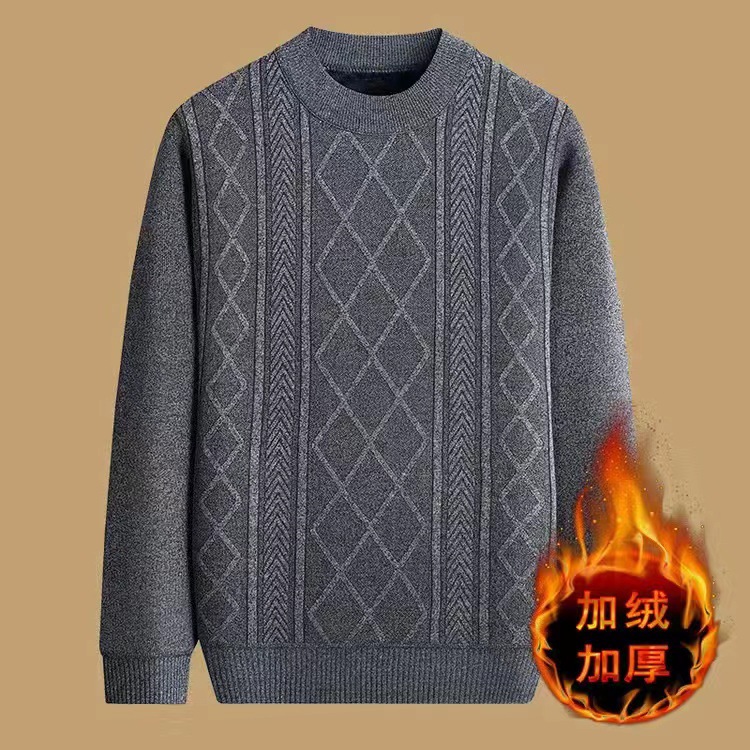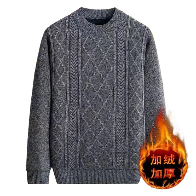 Цельный Мужской осенне-зимний новый утолщенный теплый свитер с круглым вырезом для людей среднего и пожилого возраста, свитер больших размеров