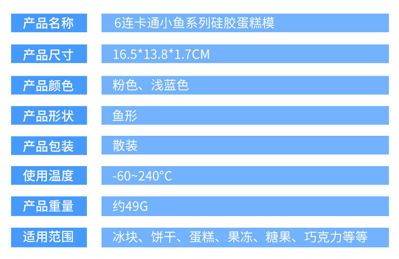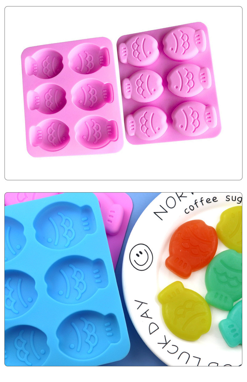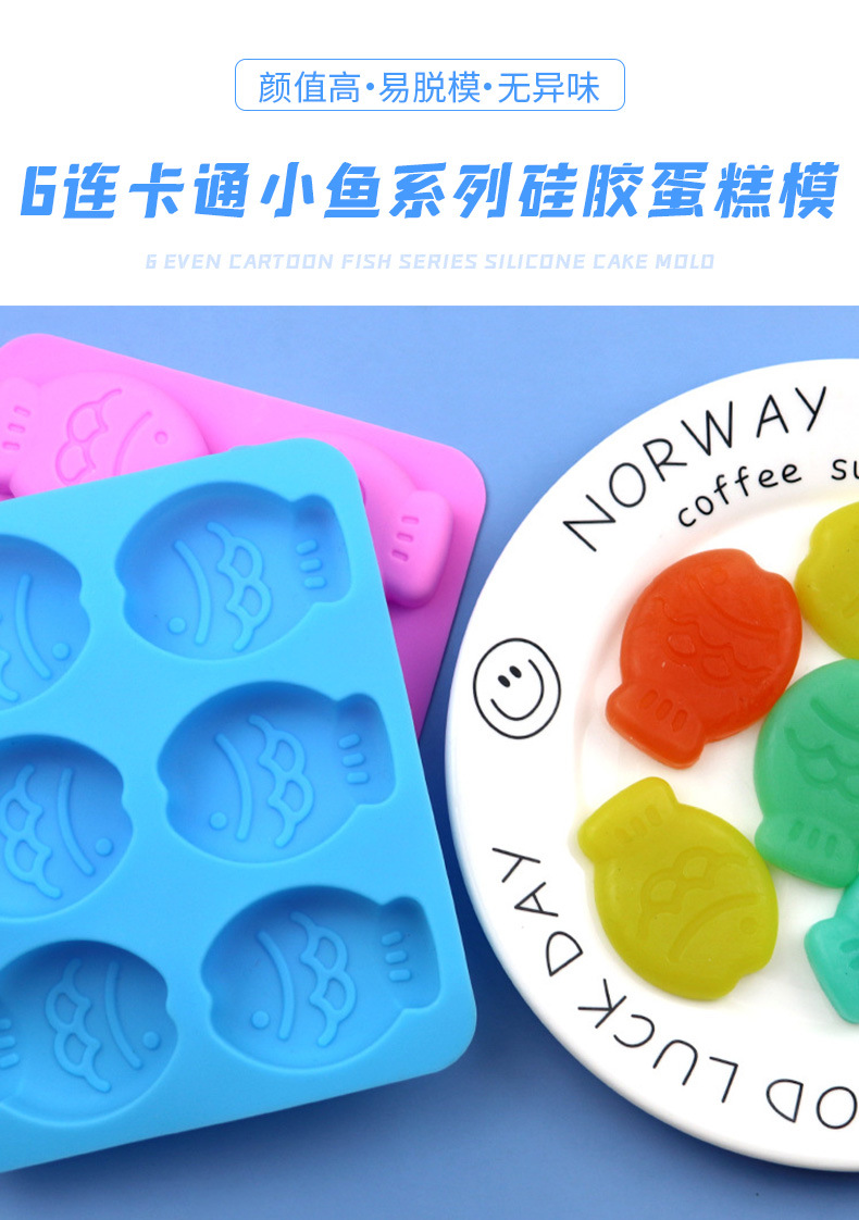 Оптовая продажа 6 даже мультяшных рыб серии силиконовой формы для выпечки посуды устойчивы к высоким температурам и легко моют
