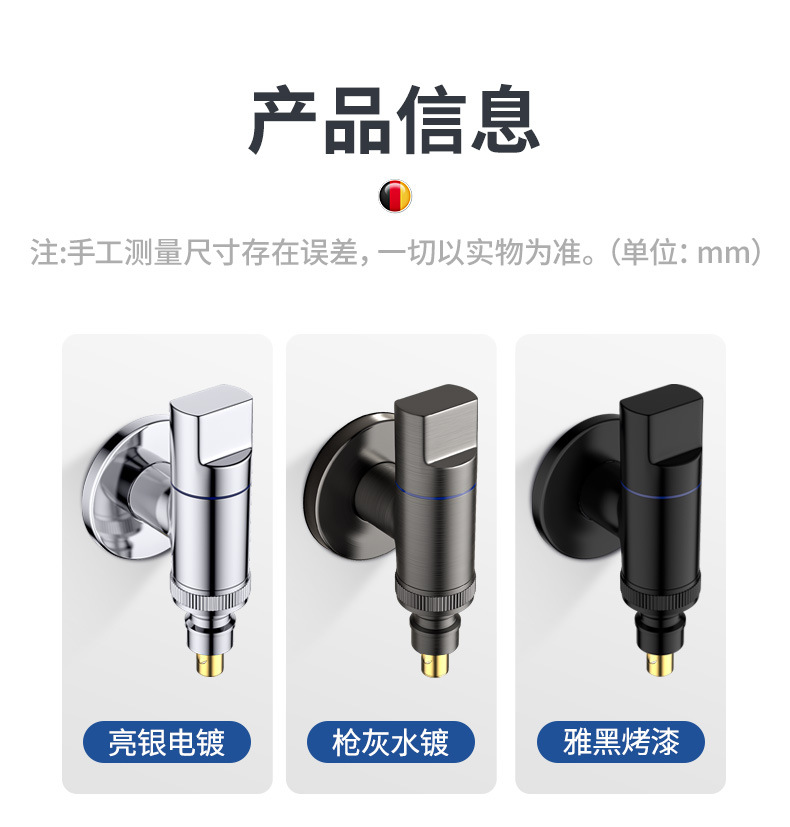 Смеситель для стиральной машины [медный 6-точечный стопор воды] цвет гальваники; Смеситель для стиральной машины [медный 6-точечный стопор воды] черный; Смеситель для стиральной машины [медный 6-точечный стопор воды] серый пистолет; Смеситель для стиральной машины [стальной 4-точечный водозапор] гальванический цвет; Смеситель для стиральной машины [стальной 4-точечный стопор воды] черный; Смеситель для стиральной машины [стальной 4-точечный стопор воды] пистолет серый; Смеситель для швабры из нержавеющей стали [универсальное вращение] Серый пистолет; Смеситель для бассейна с шваброй из нержавеющей стали [универсальное вращение] гальваническое покрытие; Смеситель для стиральной машины [сталь 4-х точечная резьба] гальванический цвет