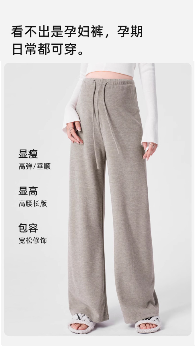 Брюки для беременных, осенне-зимняя верхняя одежда, утолщенные трикотажные брюки с широкими штанинами, зимняя повседневная верхняя одежда, прямые послеродовые брюки на флисовой подкладке