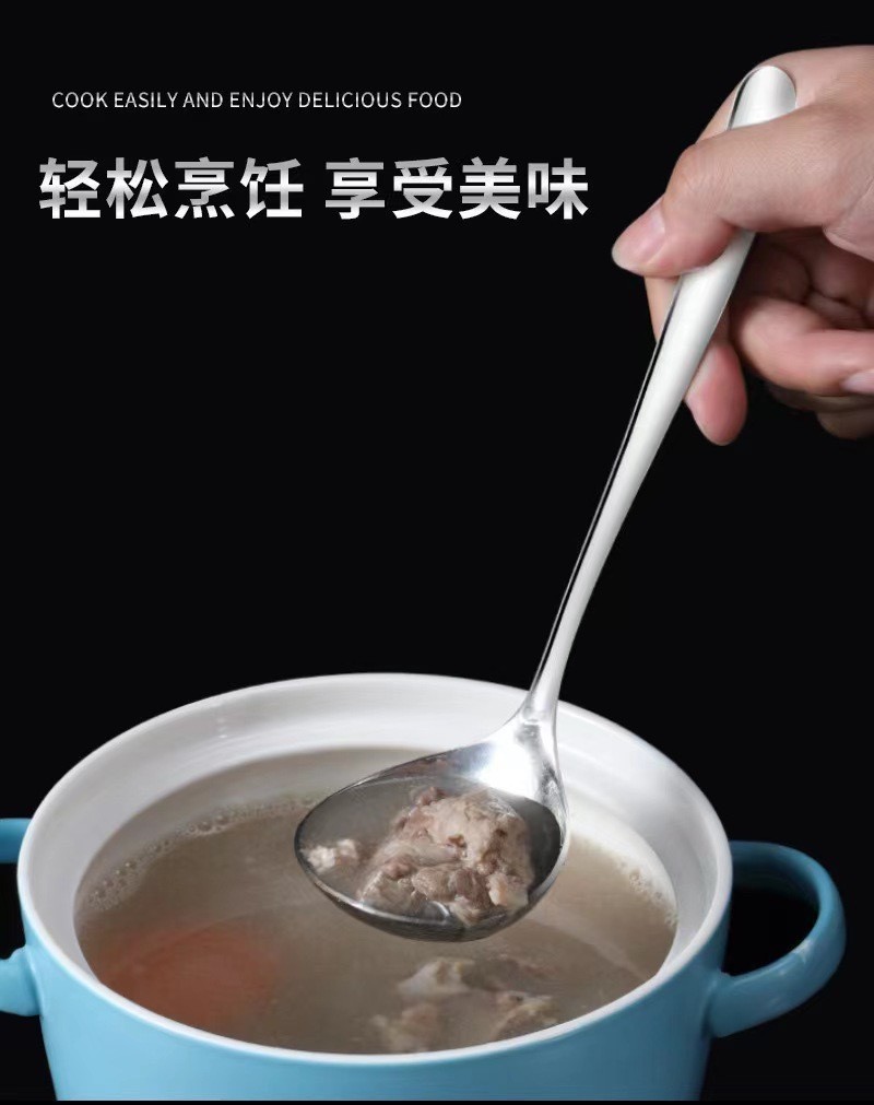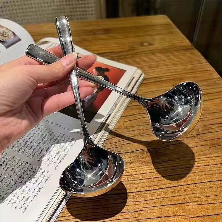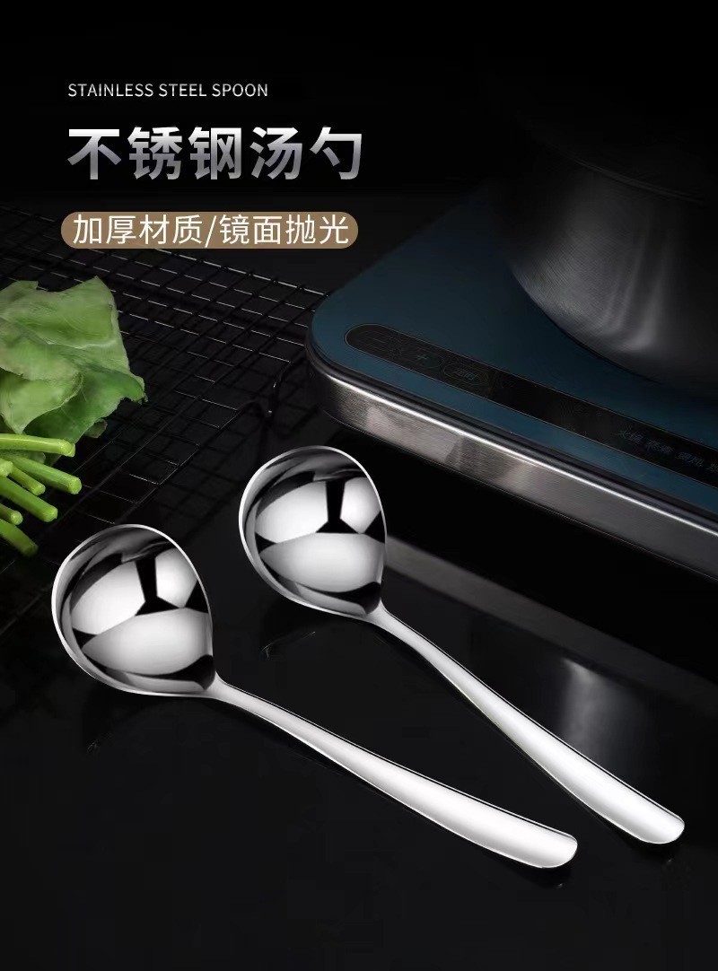Ложка для супа из нержавеющей стали, с большой головкой, длинной ручкой, для домашнего использования, подходит для подачи супа, сервировки каши, использования на кухне, для хот-пота, для общего использования.
