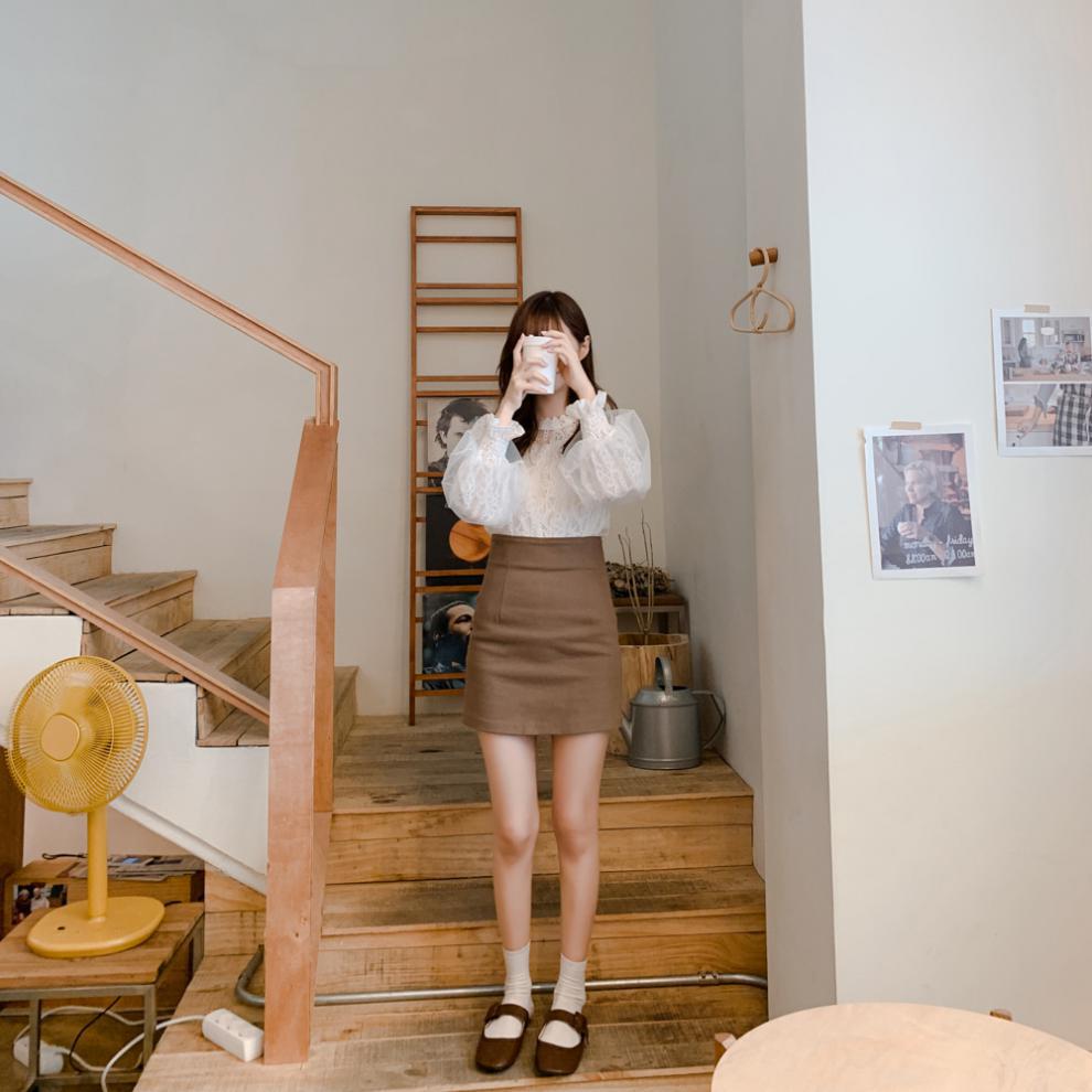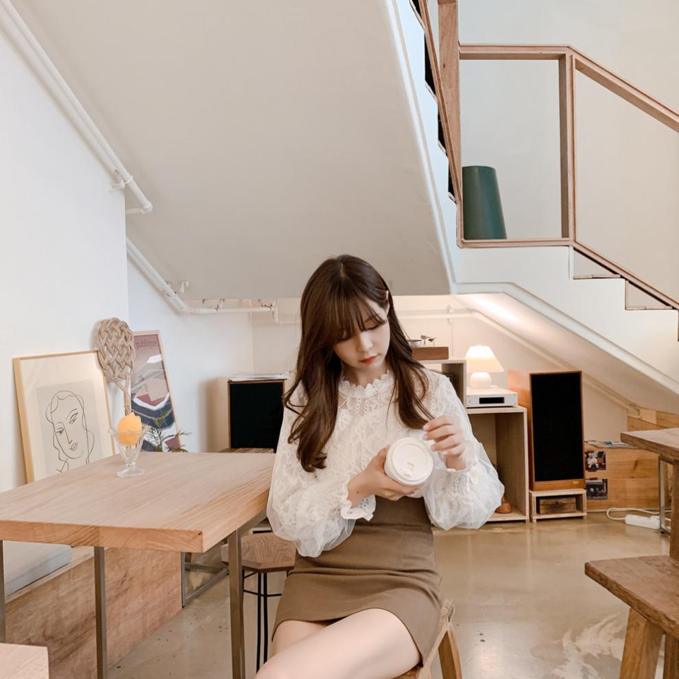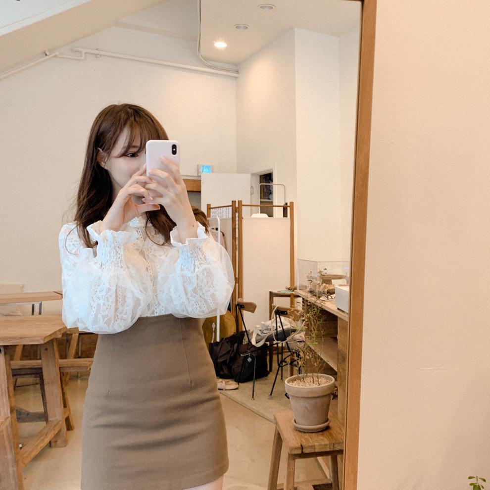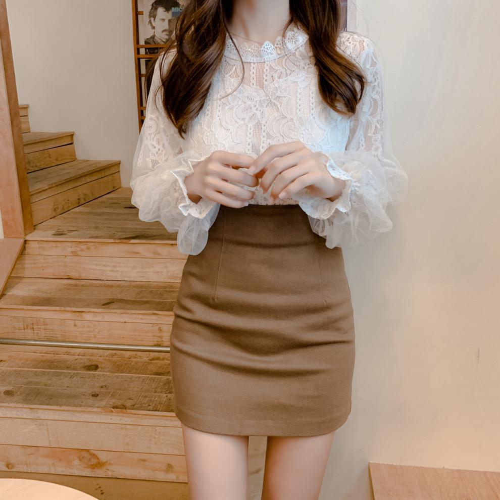 2024 новый белый корейский свободный длинный рукав сетчатая пряжа с рукавами фонарь кружевная рубашка