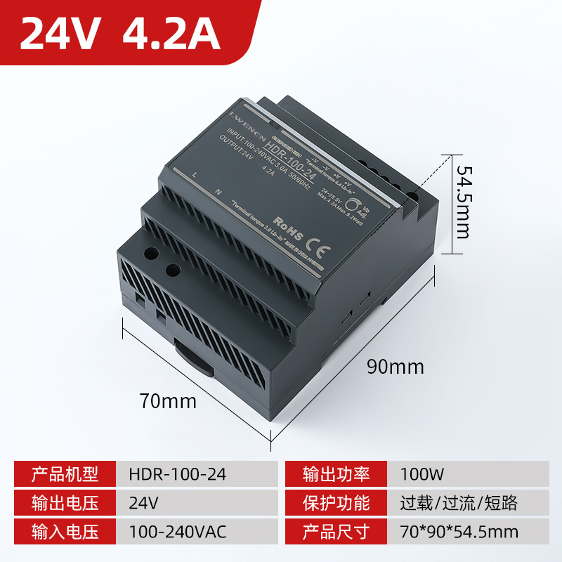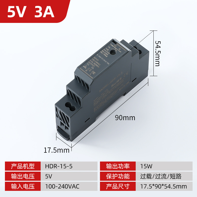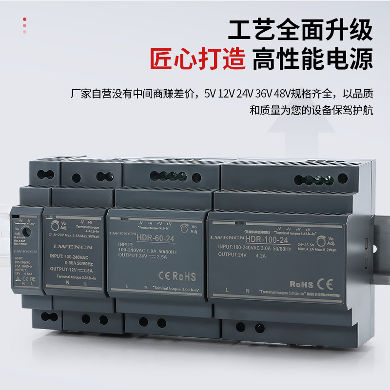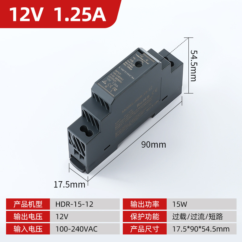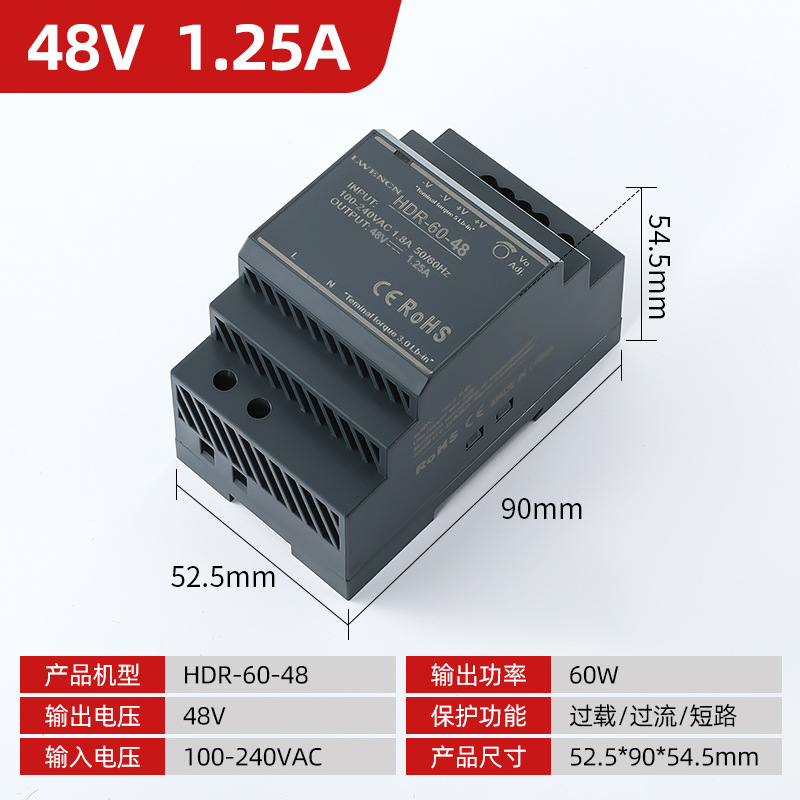 HDR-15W-5V3A; HDR-15W-12V1.25A; HDR-15W-24V0.63; HDR-30W-5V6A; HDR-30W-12V2.5A; HDR-30W-24V1.25A; HDR-60W-5V12A; HDR-60W-12V5A; HDR-60W-24V2.5A; HDR-60W-48V1.25A; HDR-100W-12V8.3A; HDR-100W-24V4.2; HDR-100W-48V2.1A; HDR-150W-24V6.25A