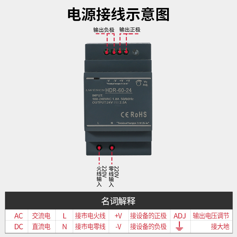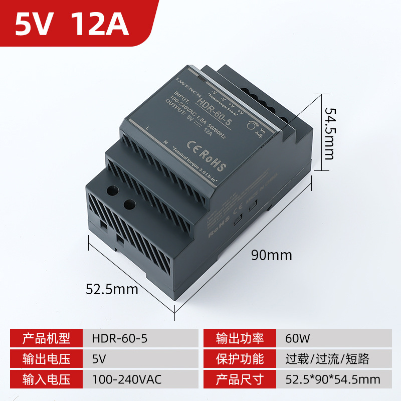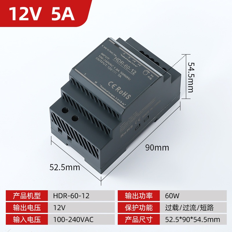 Импульсный источник питания рельсового типа HDR Трансформатор 24 В 220-12 В5А Модуль питания постоянного тока HDR-15/30/60