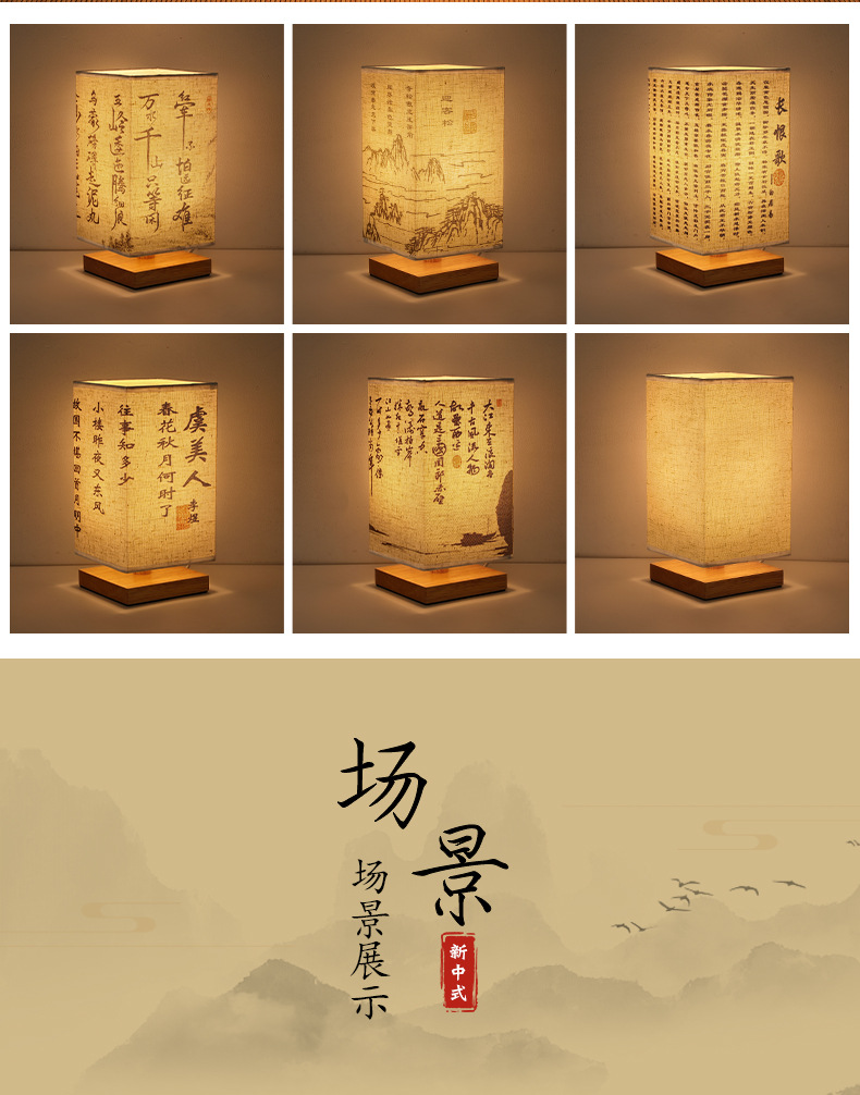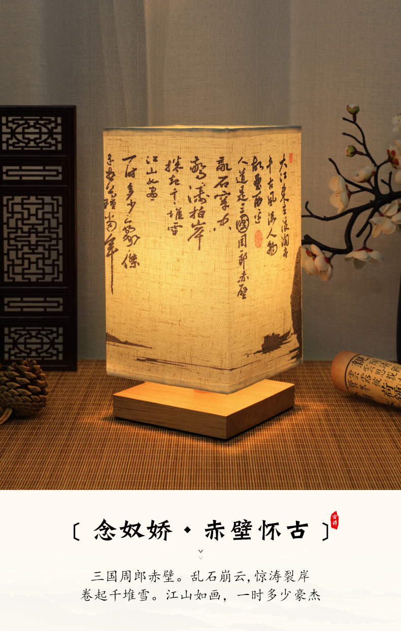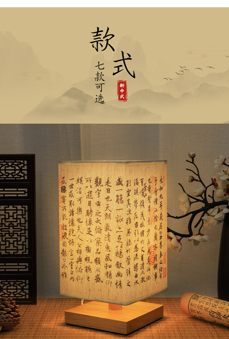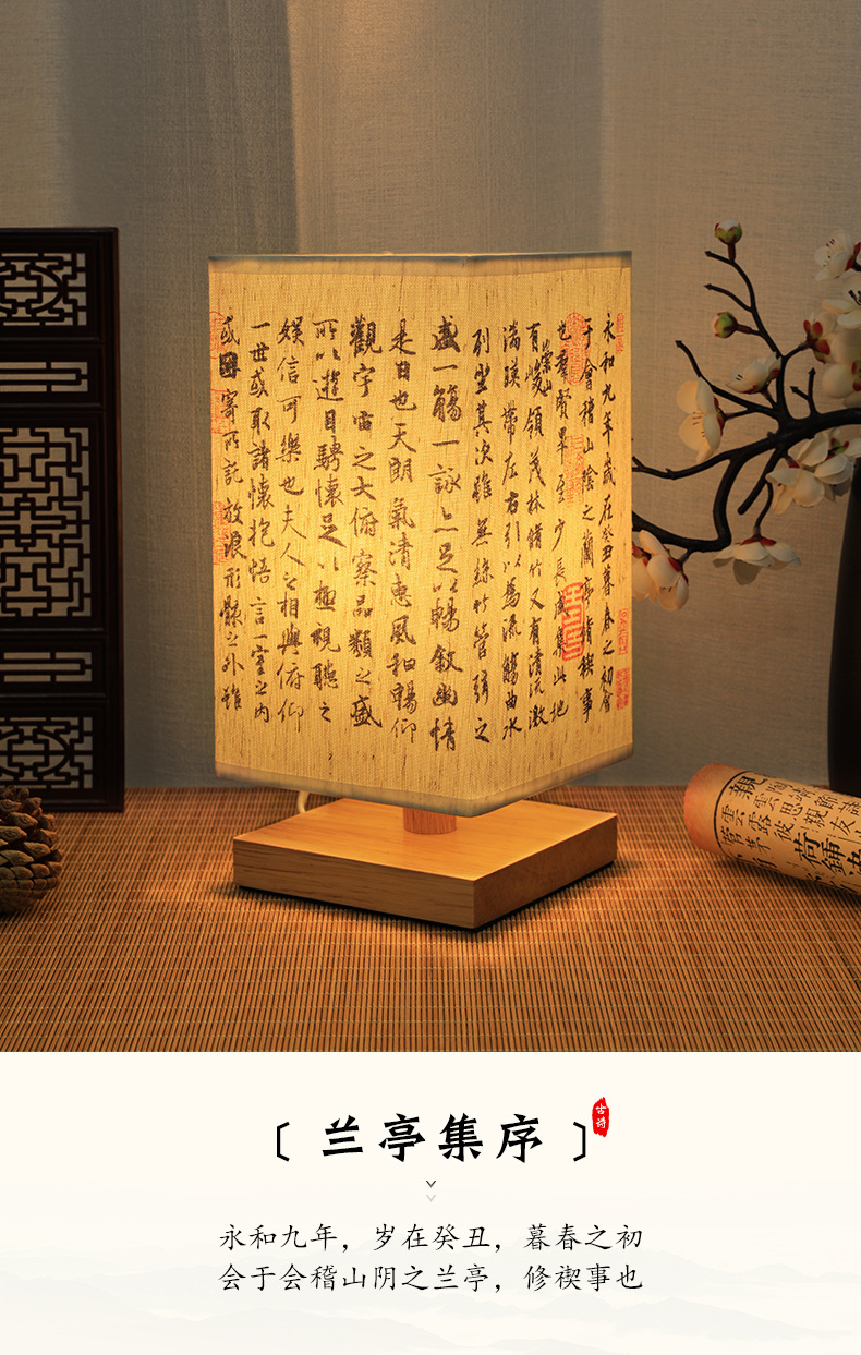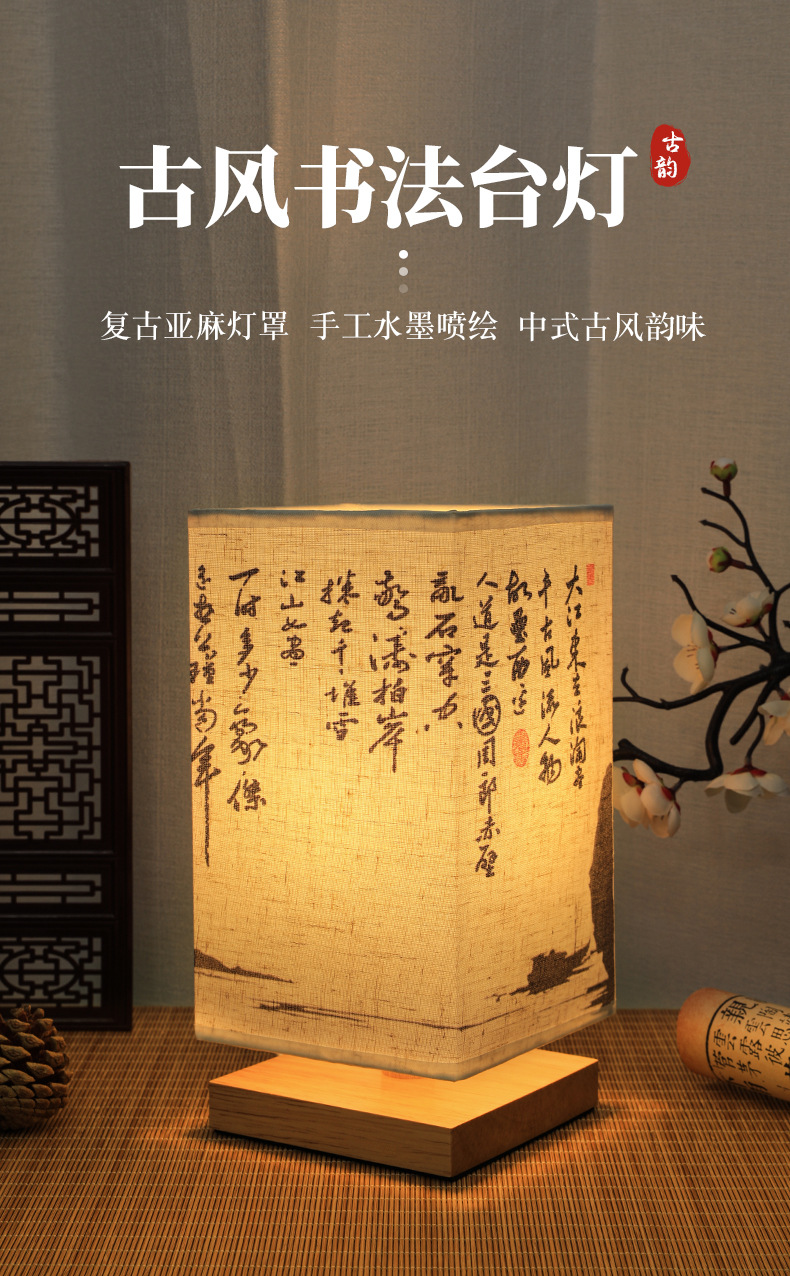 Китайский стиль ночник каллиграфия настольная лампа прикроватная тонкая золотая Ретро Простой Древний Стиль Спальня Кабинет ночник темперамент