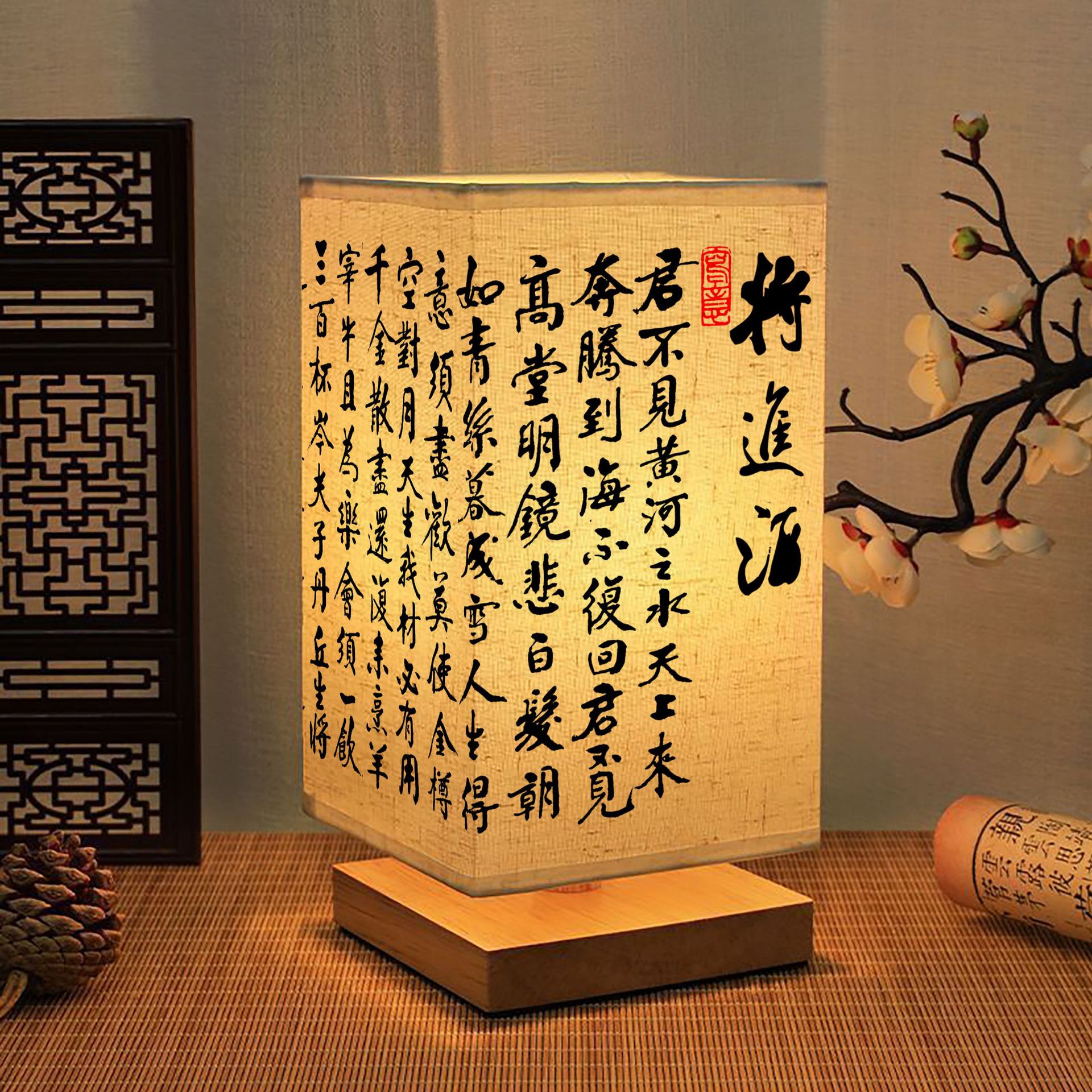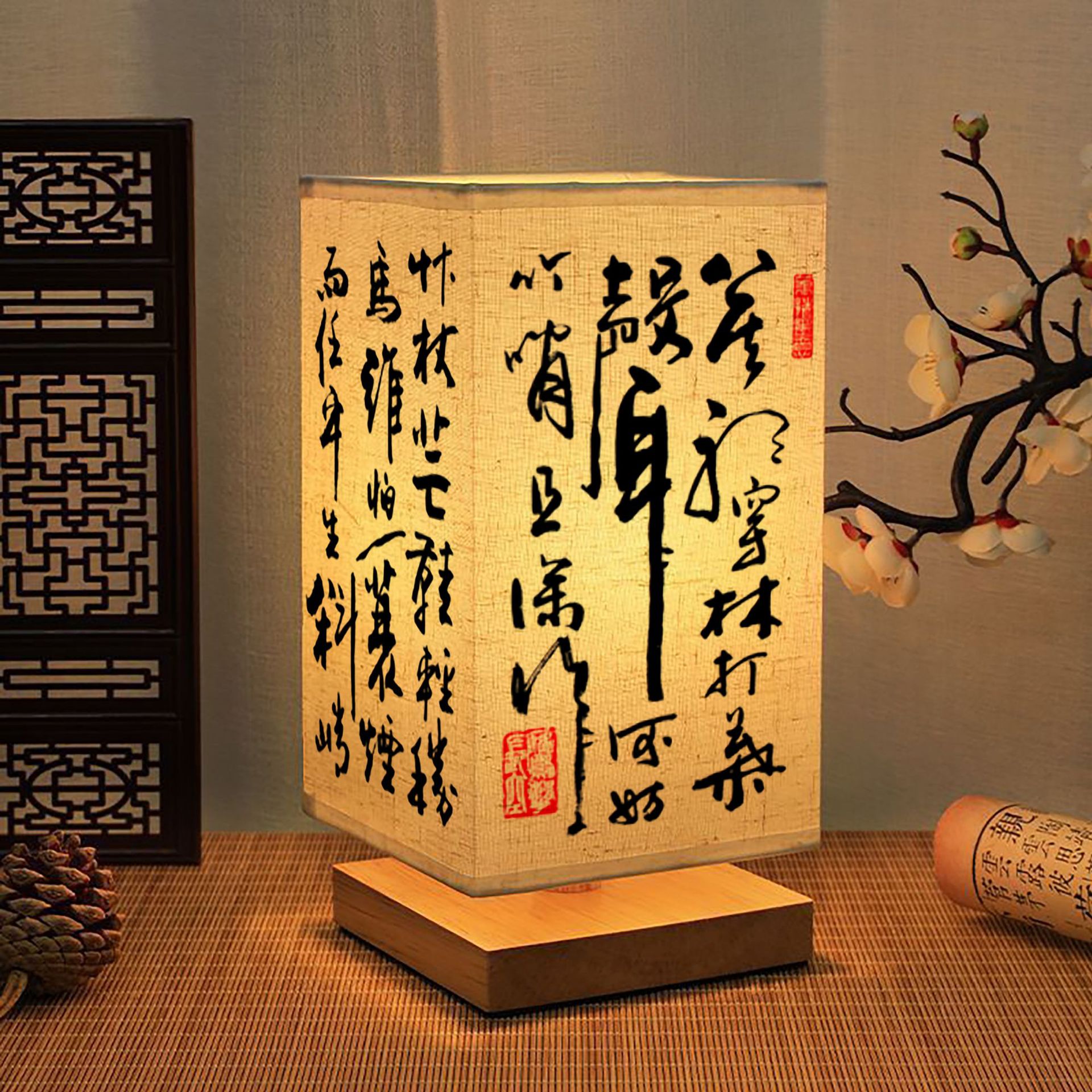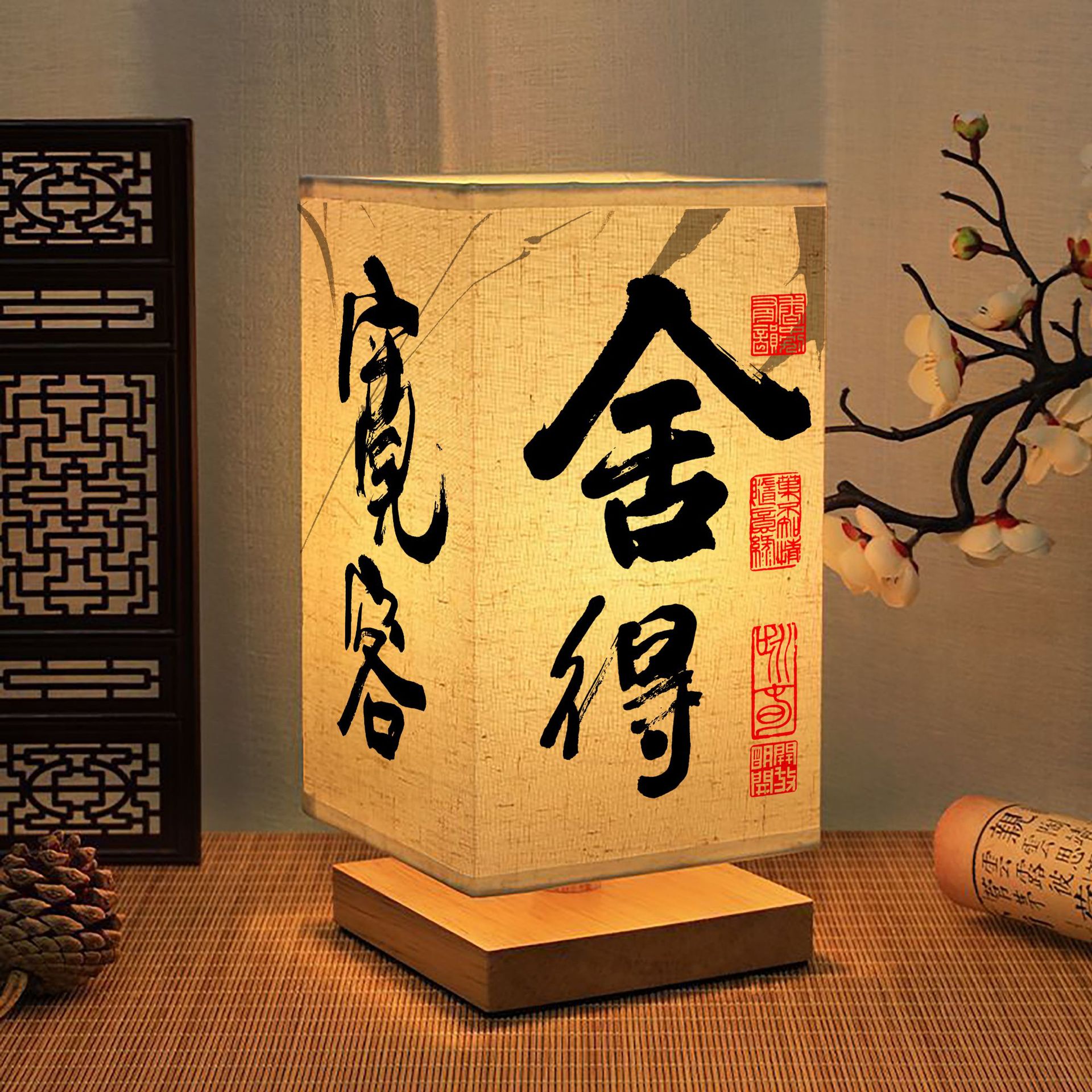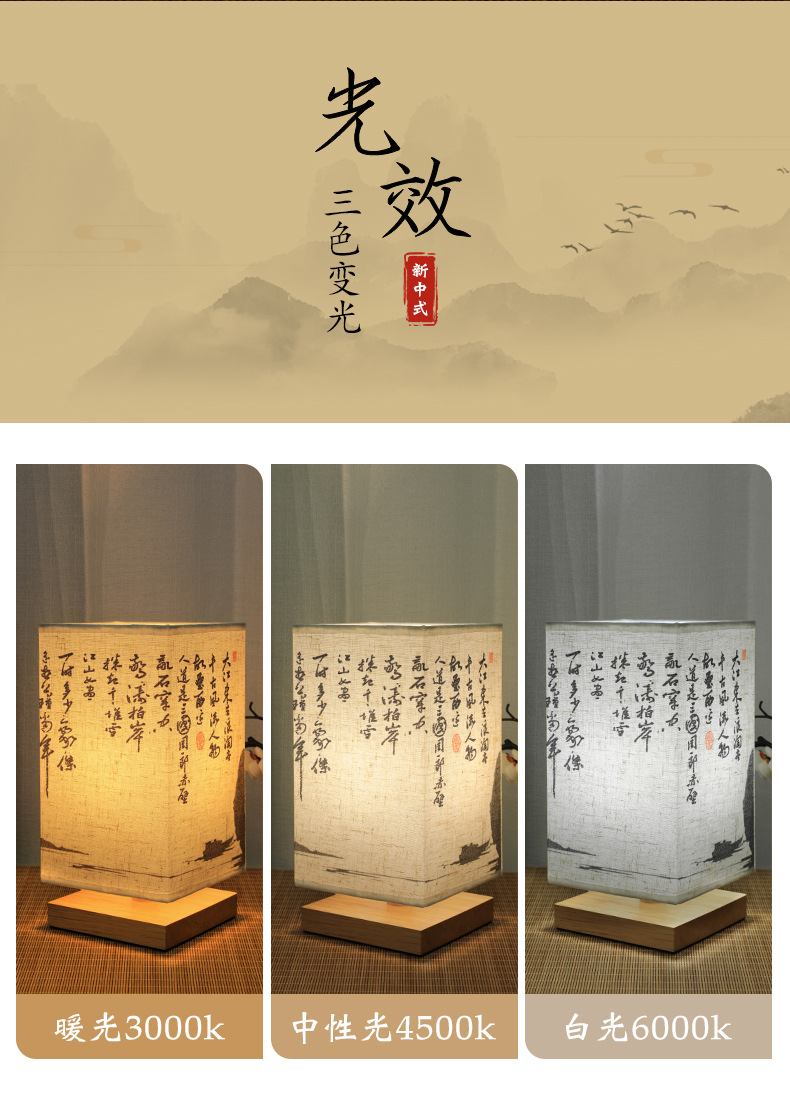 Китайский стиль ночник каллиграфия настольная лампа прикроватная тонкая золотая Ретро Простой Древний Стиль Спальня Кабинет ночник темперамент