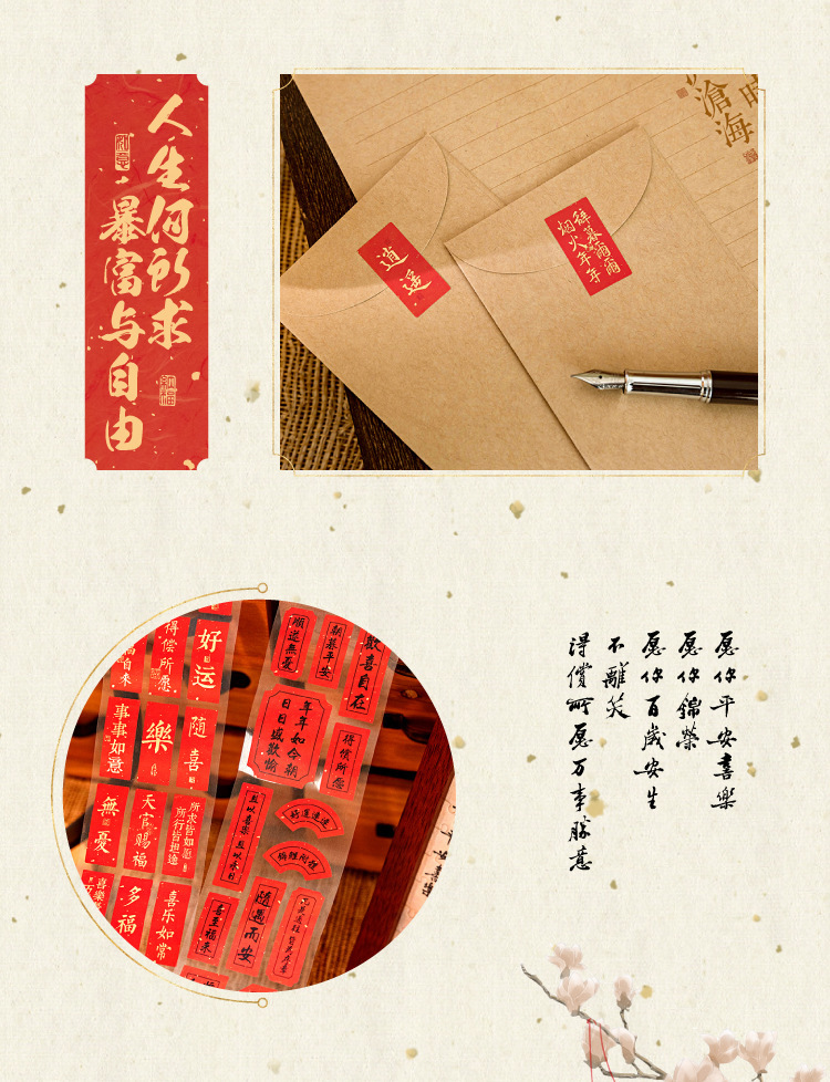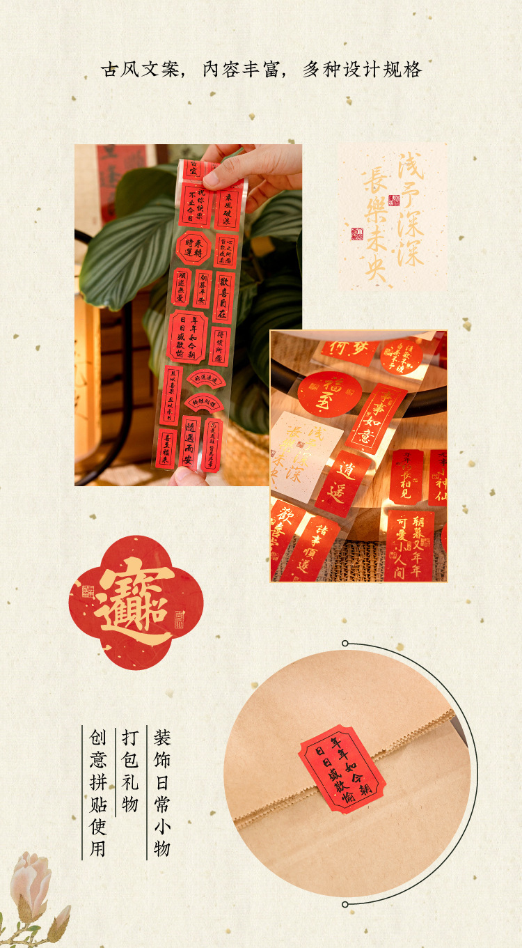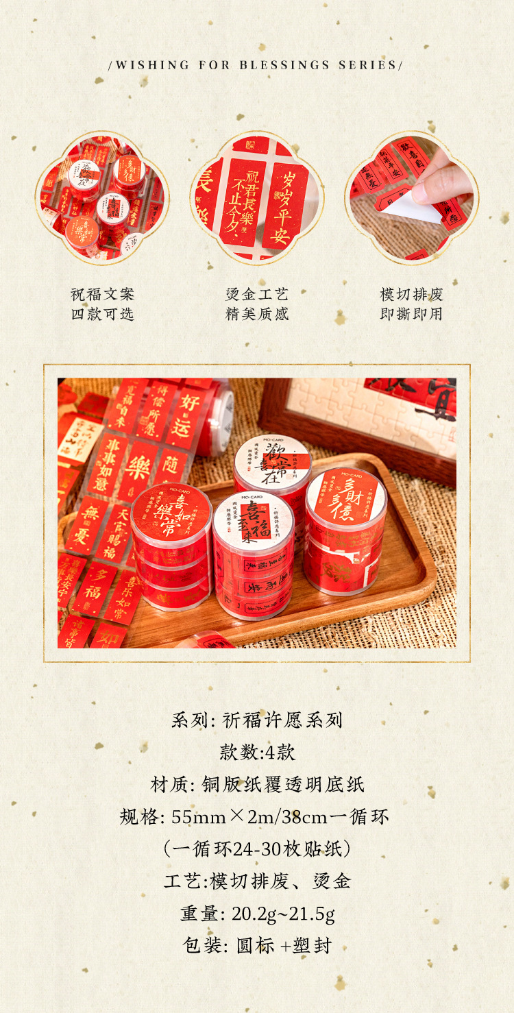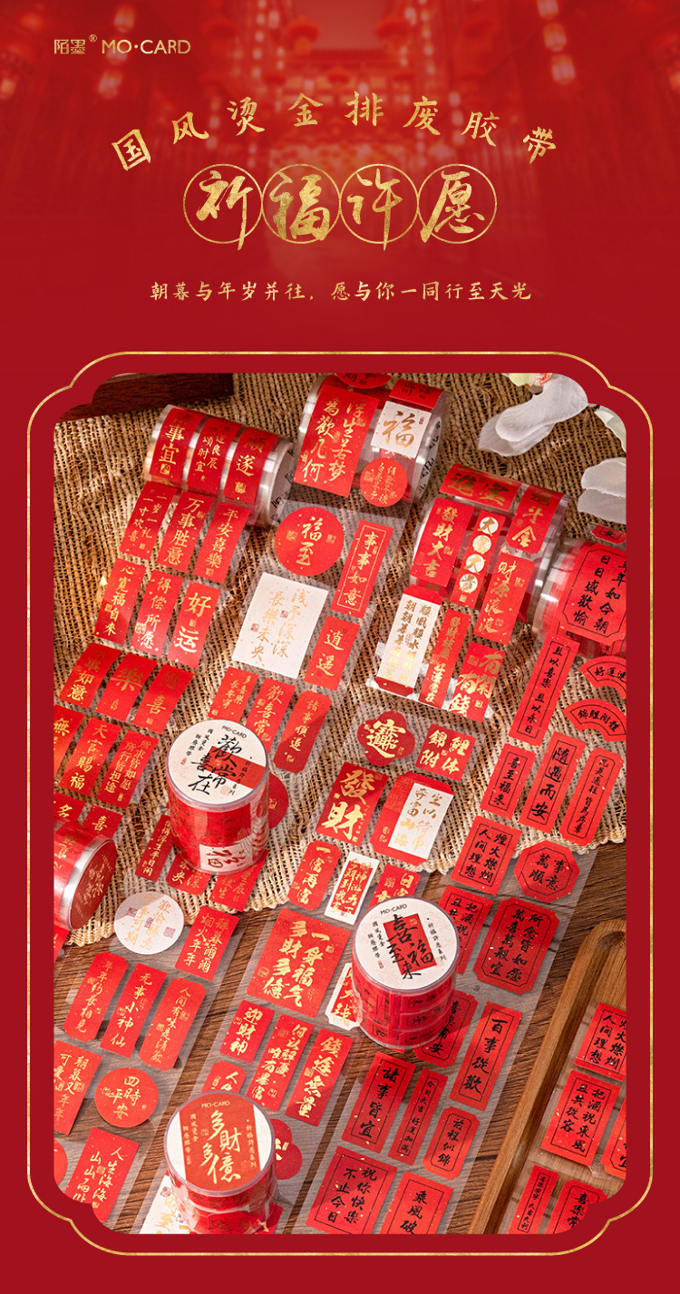 Momo Благословение Желание серии бронзовая лента для слива отходов национальная Мода Новогоднее благословение подарочная упаковка герметичные наклейки