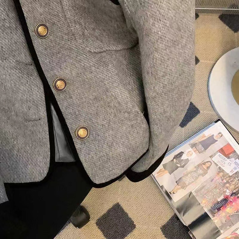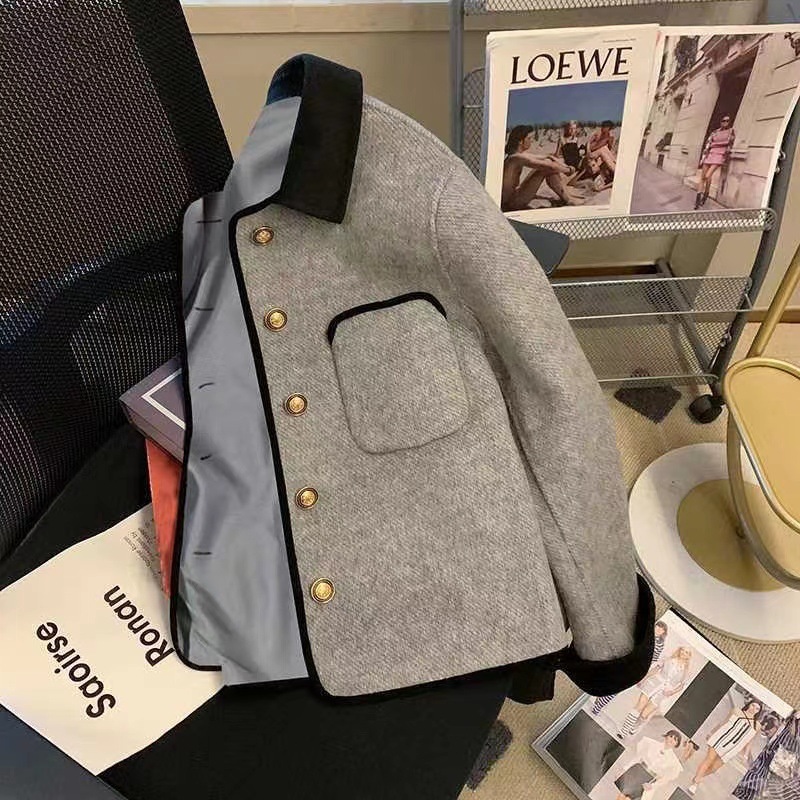 Женское шерстяное пальто, осенне-зимнее высококачественное маленькое короткое пальто в Корейском стиле, свободное сочетание цветов, элегантное модное шерстяное пальто