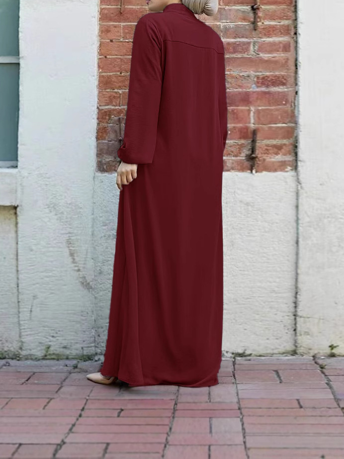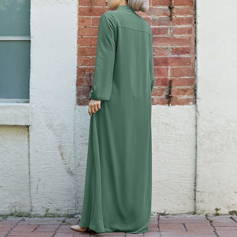 2024 Новая мусульманская женская одежда Ближний Восток Арабский стиль воротник-стойка кардиган на молнии карман темперамент свободное платье