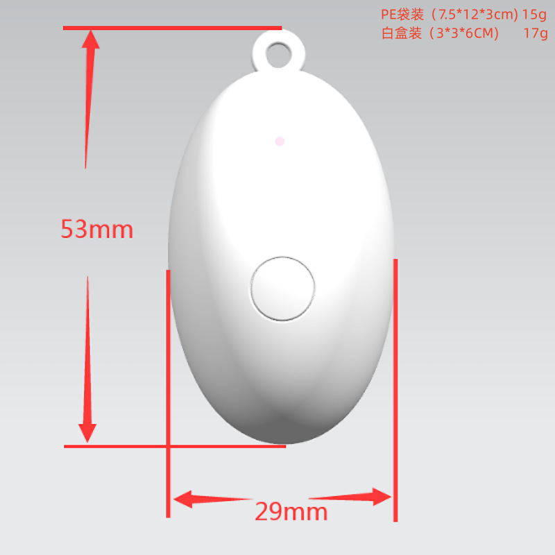 防丢器纽扣电池型号:CR2032,电池一般三个月可以更换一次,电池有保护系统,装好电池长时间未用,个别重新开机声音弱小或开不了机,请把电池后盖打开,电池拿出来,转一下位置,重新装好电池即可正常使用。