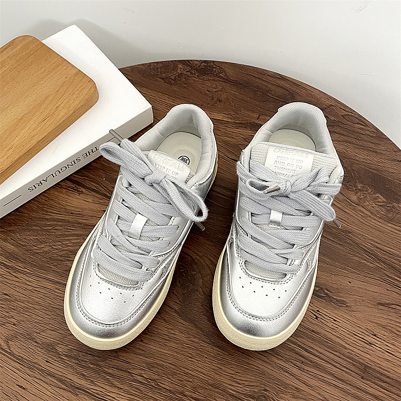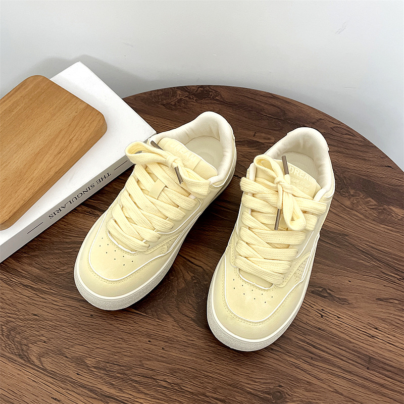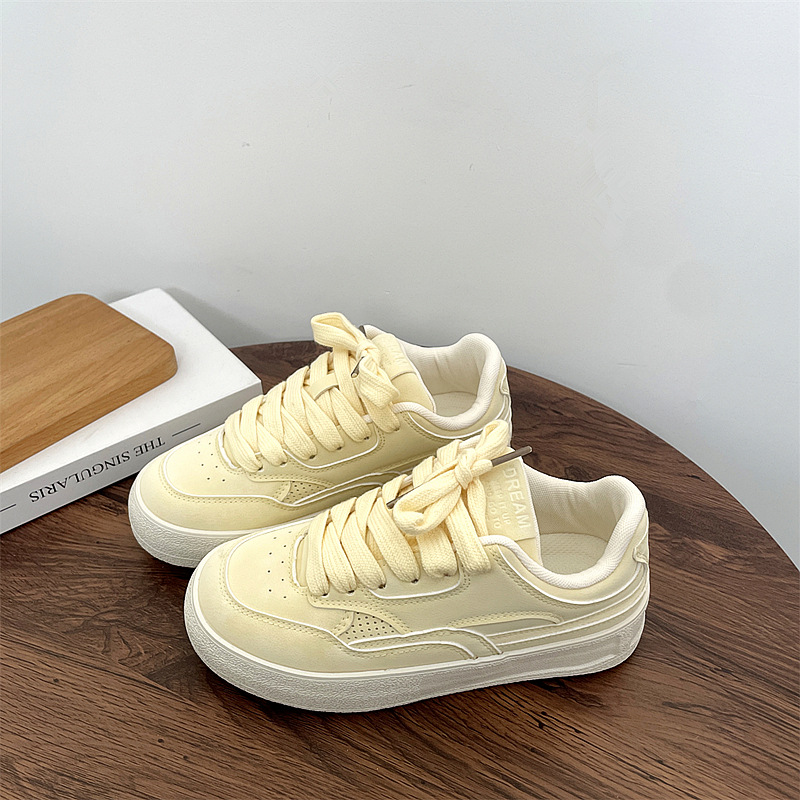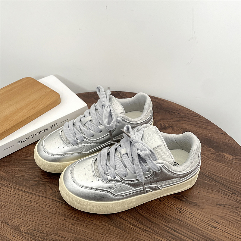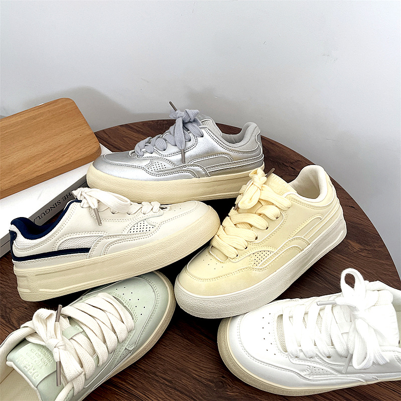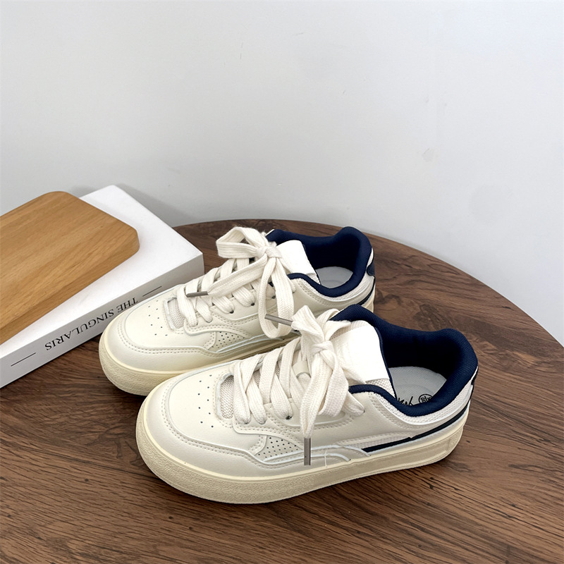 Кожаные белые кроссовки для женщин, универсальные повседневные парусиновые туфли на толстой подошве в гонконгском стиле, модные осенние шикарные туфли 2024 года.