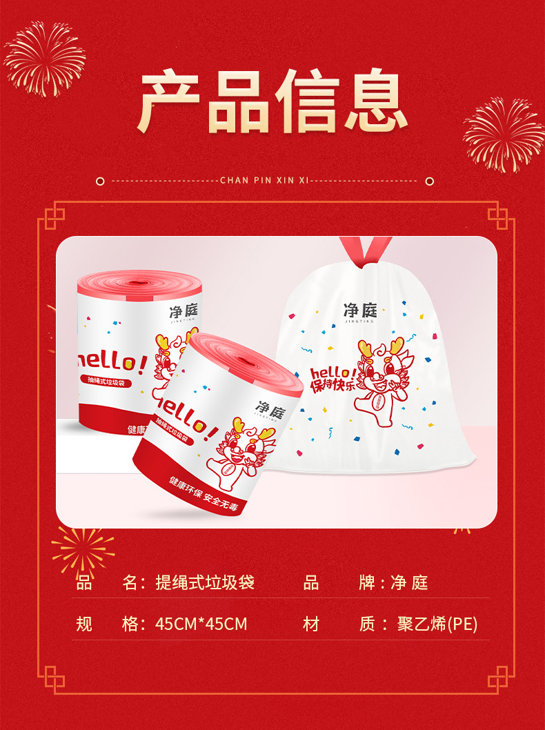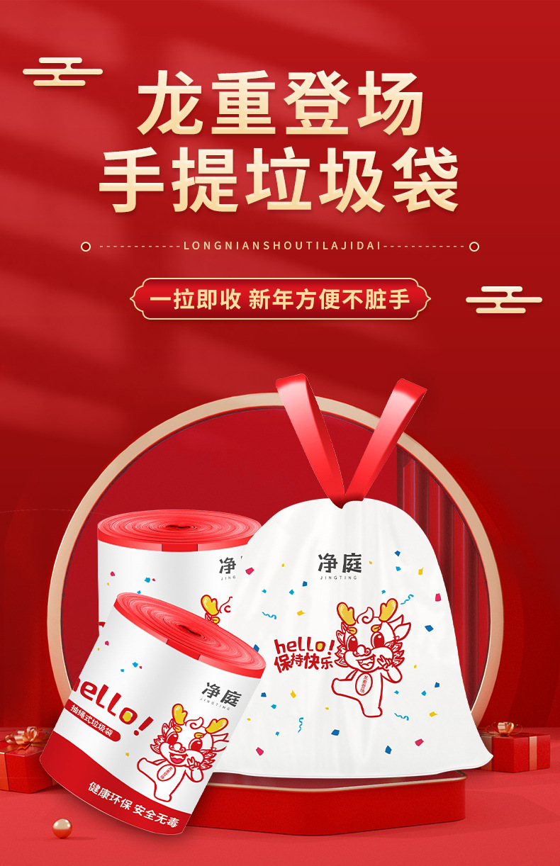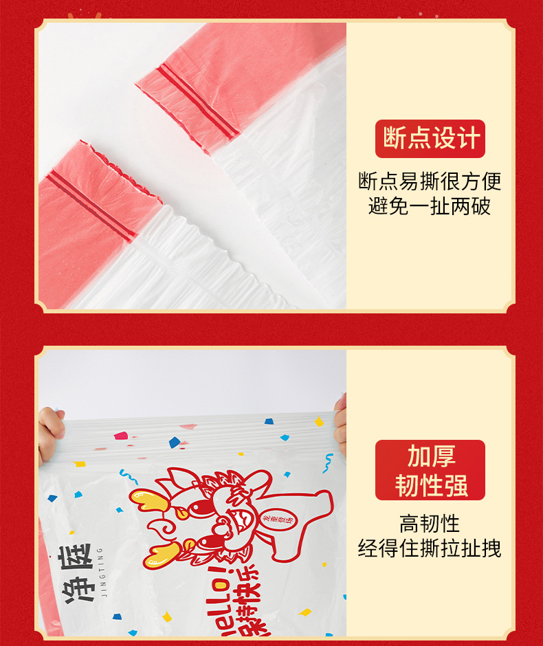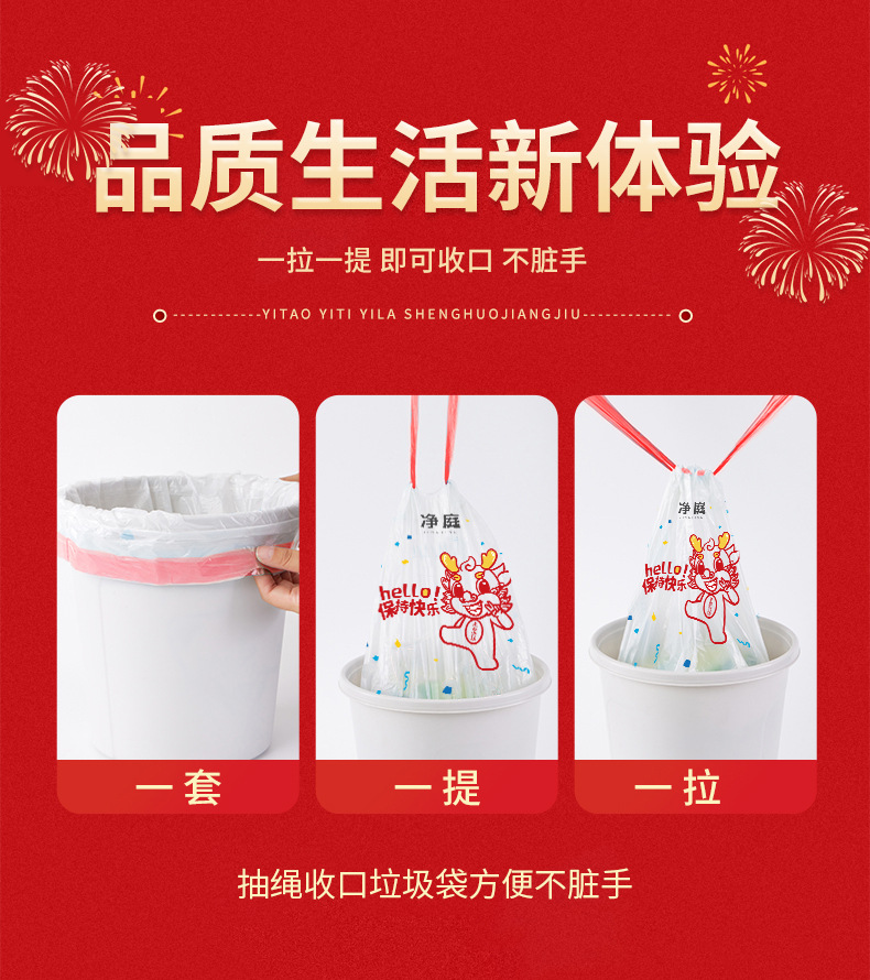 Dragon year Печатный шнурок мешок для мусора праздничный мешок для мусора Красный Печатный шнурок Кухня дома утолщенный большой рулон