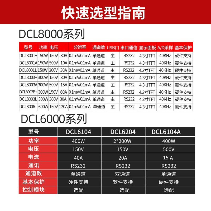 DCL6102 [150V 20A 200W] Одноканальный; DCL6104 [150V 40A 400W] Одноканальный; DCL6204 [150 В 20 * 2A 400 Вт] (двухканальный; DCL6104A [500V 15A 400W] Одноканальный; DCL6106 [150V 40A 600W] Одноканальный