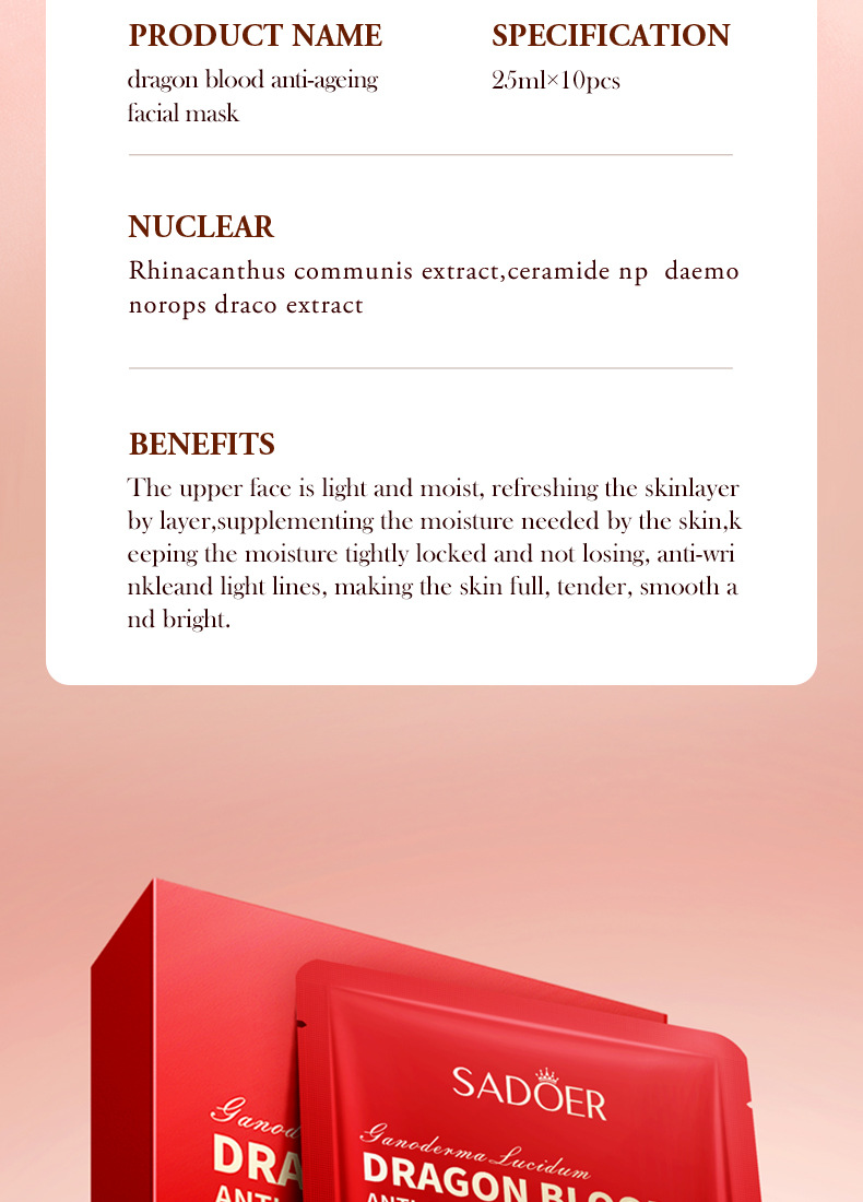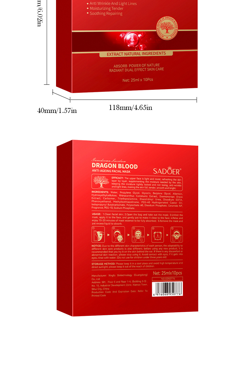 Полный английский Ganoderma Dragon Blood Series SADOER Увлажняющий омолаживающий крем против морщин