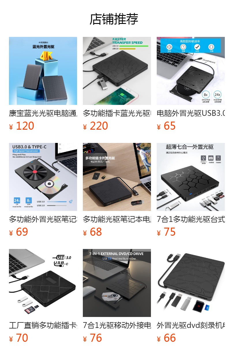 (全功能,读取和刻录速度均外置光驱中较高倍数)