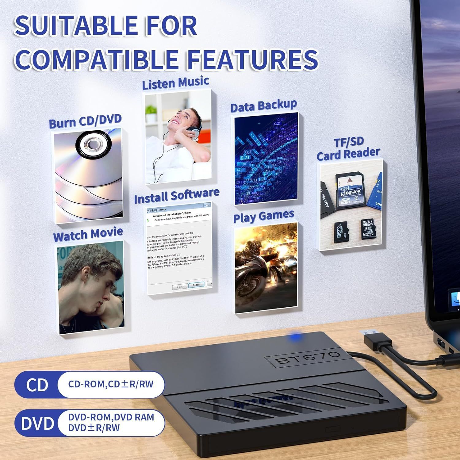 Многофункциональный мобильный оптический привод для компьютеров и ноутбуков, DVD-привод, семифункциональное устройство для чтения и записи с поддержкой карт памяти, USB-оптический привод, устройство «все в одном»