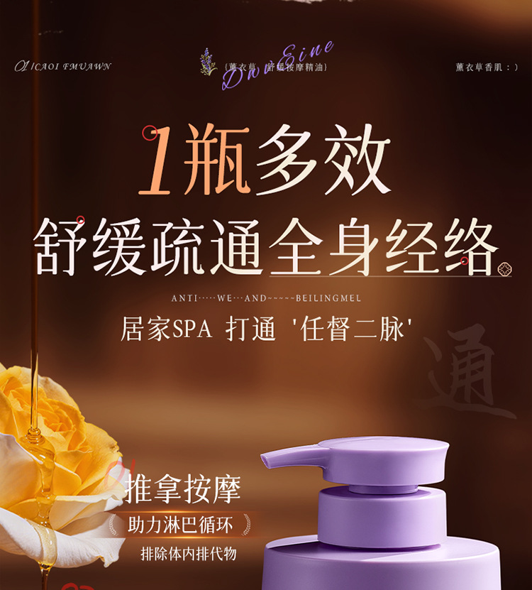 Массажное эфирное масло лаванды 550 мл; Масло для массажа с полынью и имбирем для омоложения кожи, 300 мл