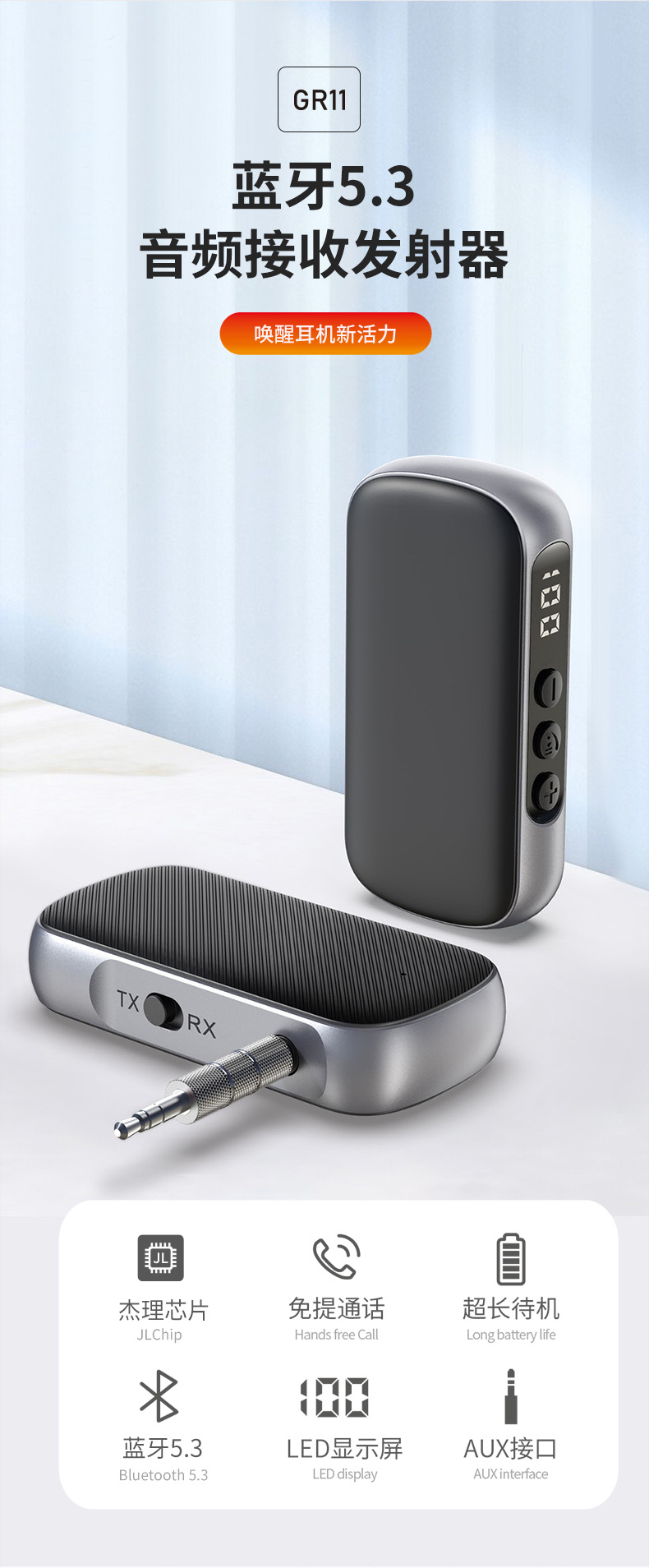 Автомобильный Bluetooth-приемник и передатчик, дисплей питания «два в одном», долговечный Bluetooth-адаптер из алюминиевого сплава