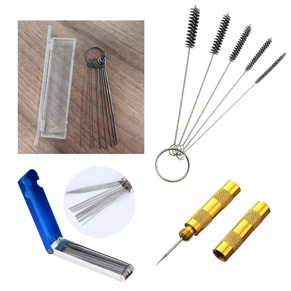 Набор игл, 5 шт.; Набор кистей, 5 шт.; Набор игл в алюминиевой коробке из 13 предметов; Набор игл в пластиковой коробке, 10 шт.; Одиночная игла; Набор кистей из 15 предметов + гаечный ключ; Набор из десяти предметов + одна игла; Набор из десяти предметов + игла из алюминиевого ящика; Набор кистей из 15 предметов + гаечный ключ + одна игла; Набор из 10 предметов + игла для алюминиевого ящика + игла с одним проходом; Алюминиевая коробка + игла в пластиковом ящике + набор кистей из 5 предметов + игла; Алюминиевый ящик + 3 кисти + 5 кистей + 10 игл.; Алюминиевая коробочка + 10 игл + 1 золотая игла + 5 кистей.