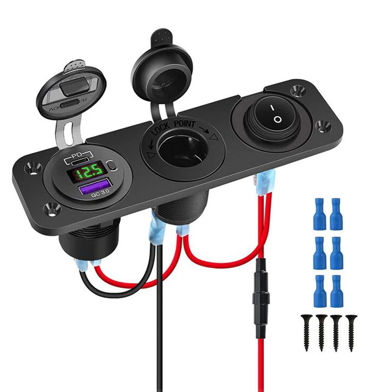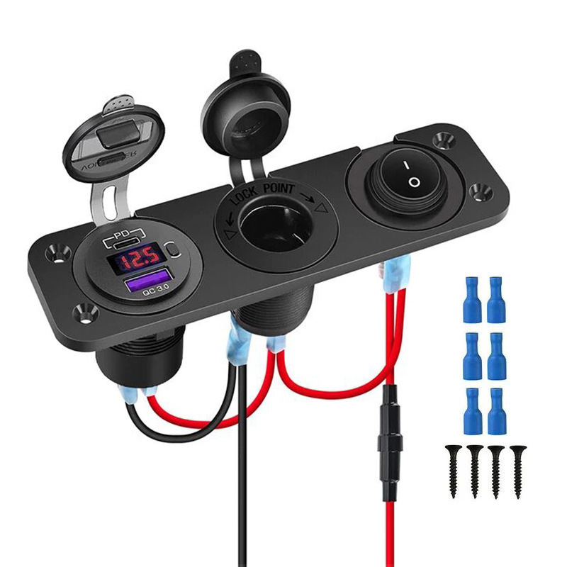 Автомобильное зарядное устройство Модифицированный Автомобиль Мотоцикл яхта три-в-одном автомобильное зарядное устройство с дисплеем напряжения PD + QC3.0 Быстрая зарядка