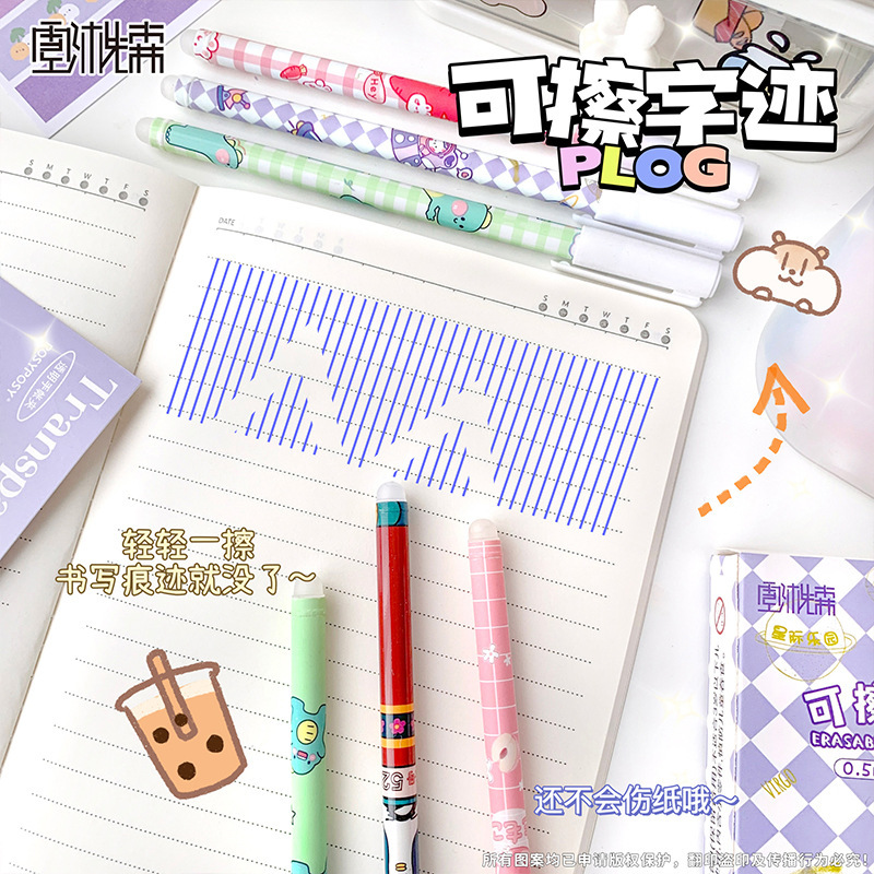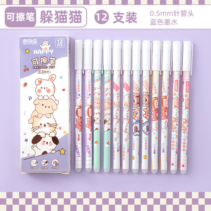 Маркеры-гели с эффектом стирания, набор из 12 штук, тонкий наконечник 0,5 мм, для девочек, высокая эстетичность, быстросохнущие, без колпачка, термочувствительные стираемые ручки