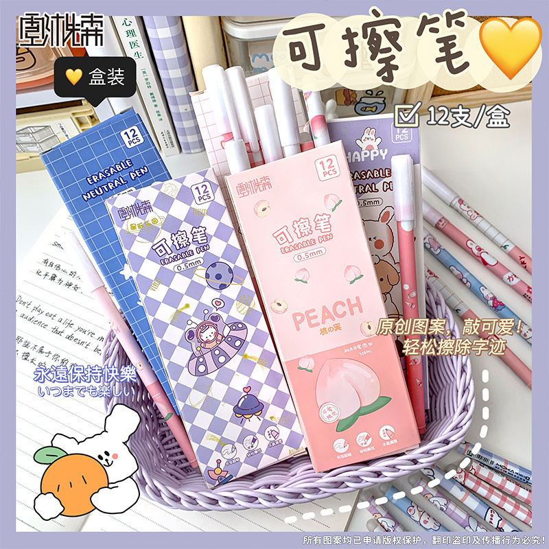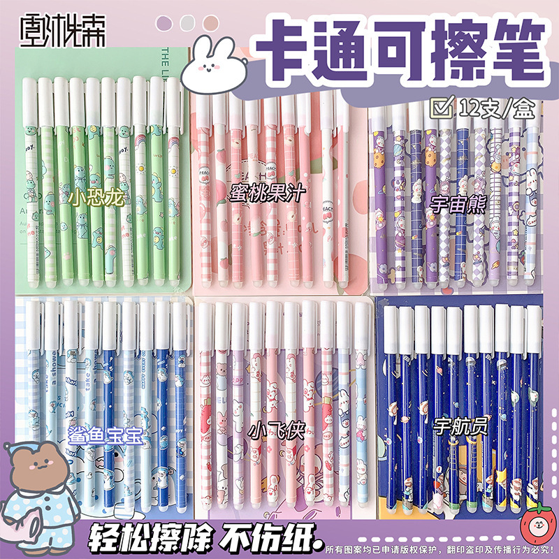 Набор из 12 предметов Youyou Capybara; Panda Jenga 12 стираемых ручек; Набор из 12 стираемых ручек Princess An'an; Набор из 12 стираемых ручек Cosmic Bear в коробке; Набор из 12 стираемых ручек Astronaut; Набор из 12 стираемых ручек Peter Pan; Набор из 12 стираемых ручек «Маленький динозавр»; Коробка из 12 стираемых ручек с ароматом персикового сока; Набор ластящихся ручек Hide and Seek, 12 штук