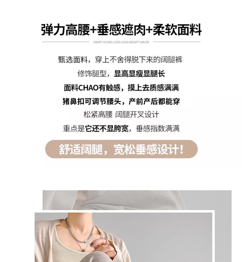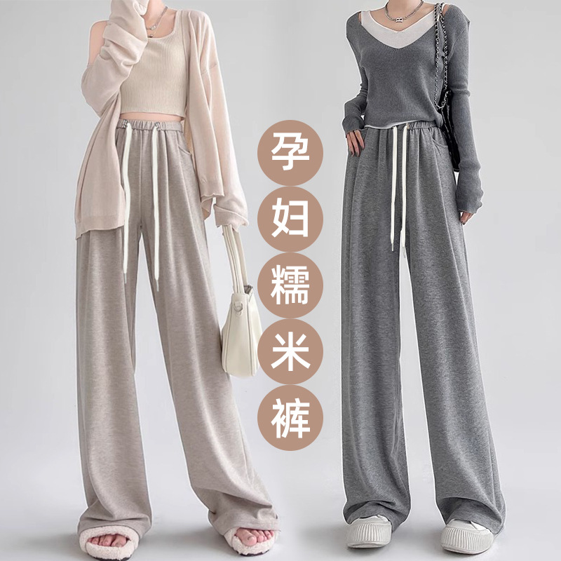 Беременные женщины также могут носить клейкие рисовые широкие брюки свободные с высокой талией