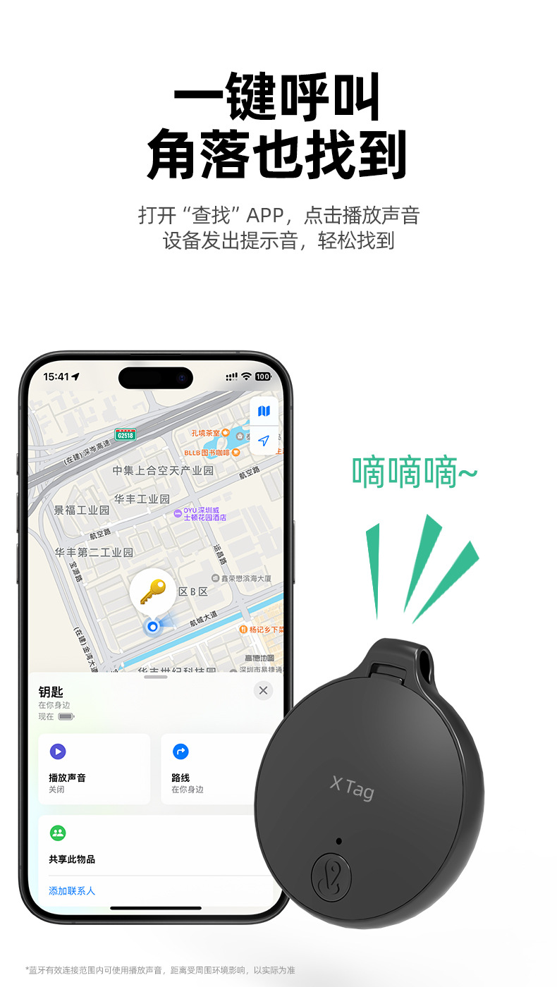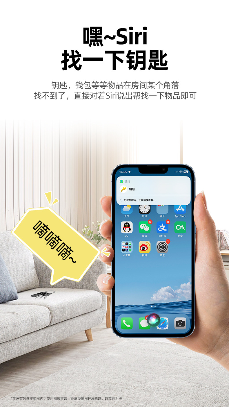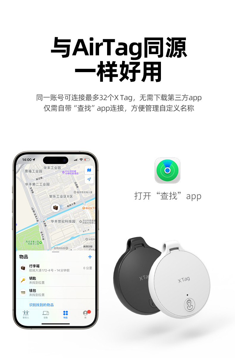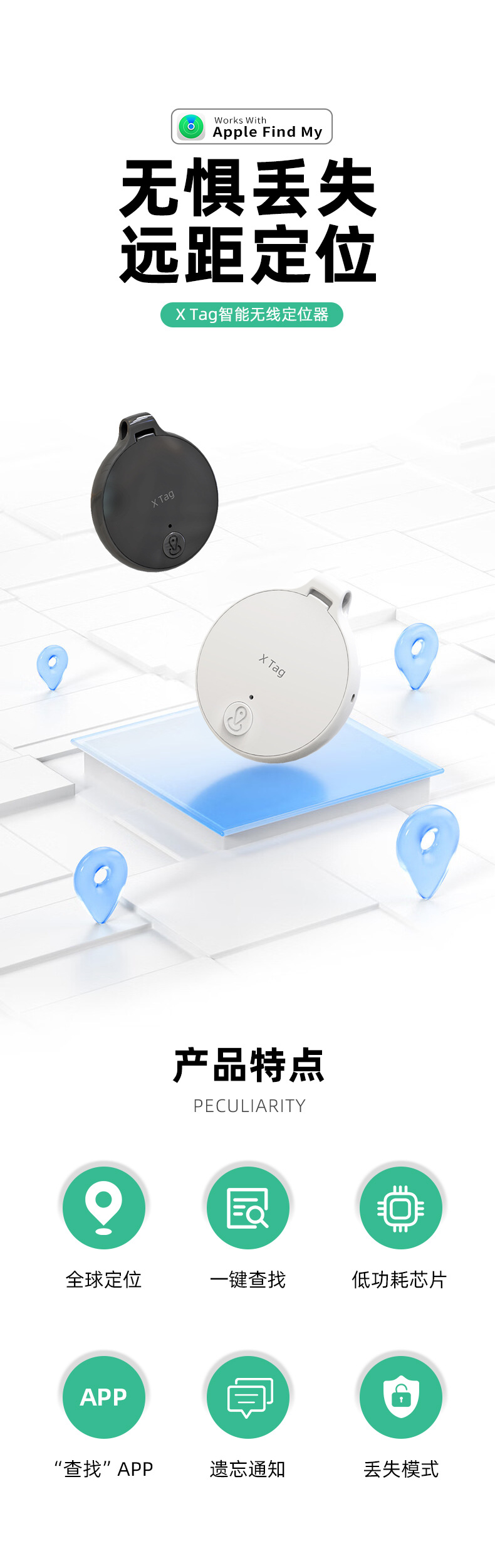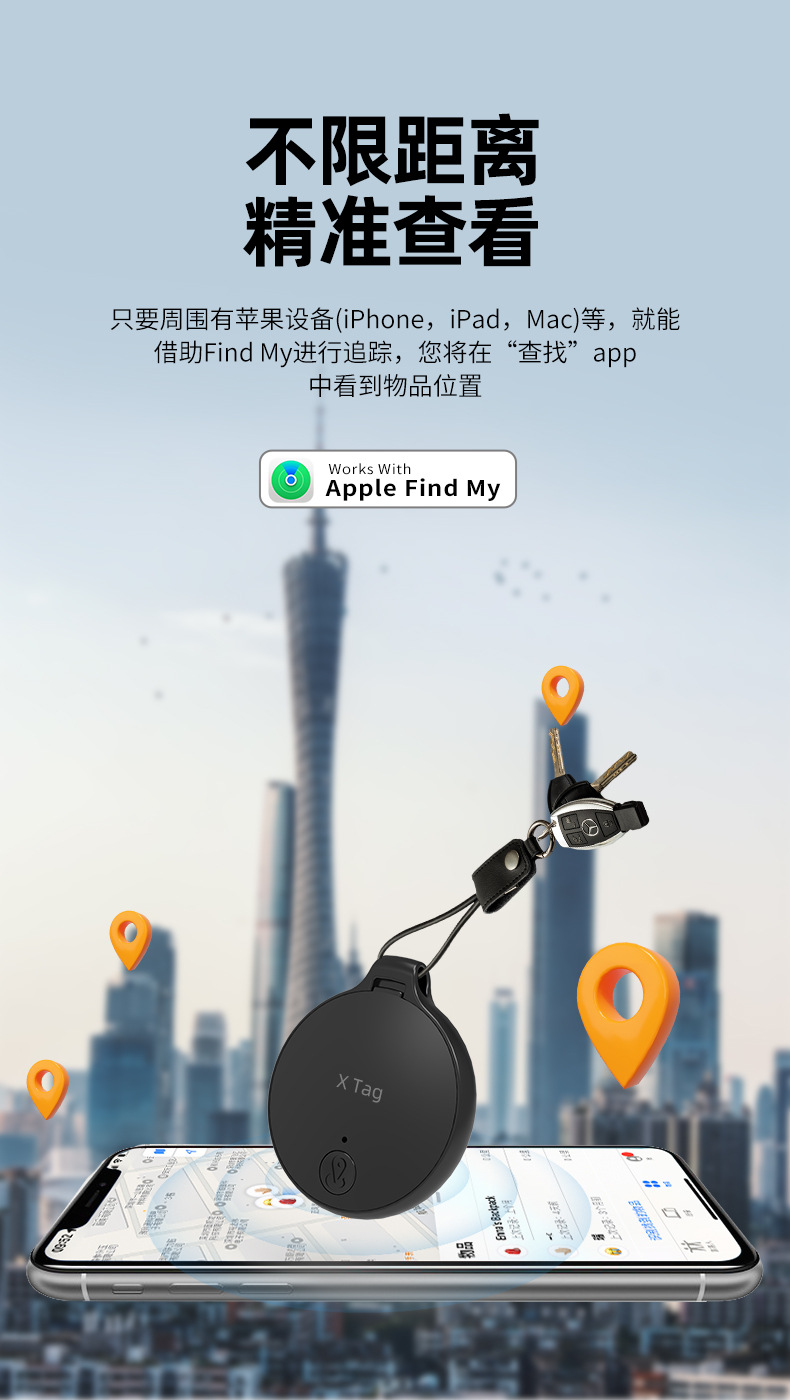 定位原理:定位器搜索附近别人的苹果设备进行加密定位并且发送信号到iCloud服务器上,自己手机就可以看到防丢器的位置以实现超远定位