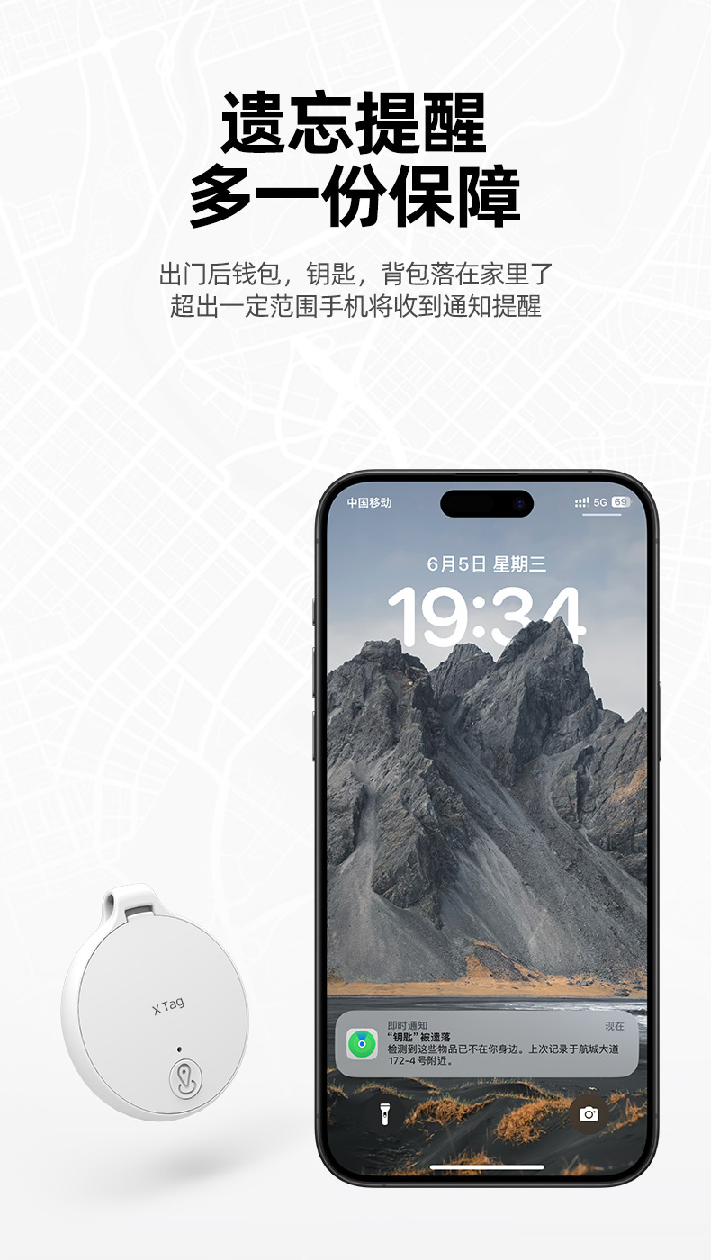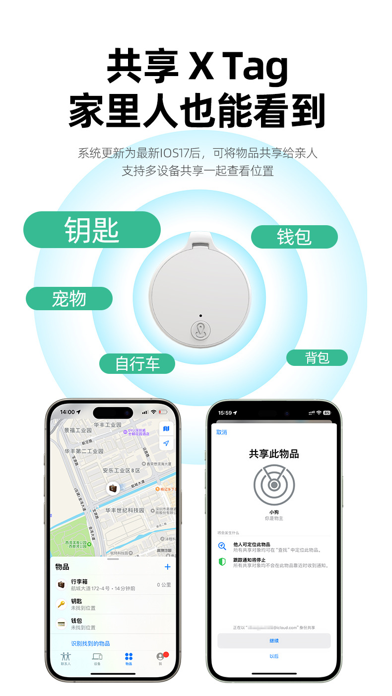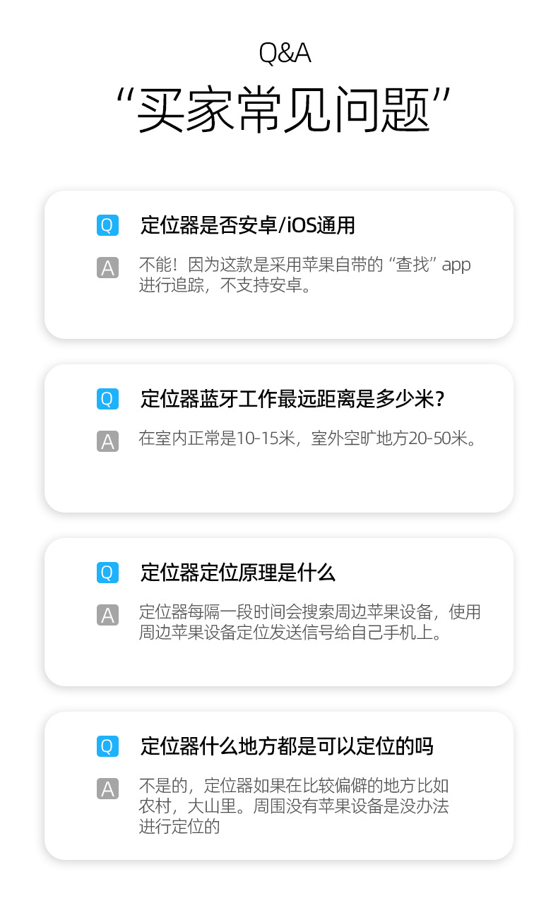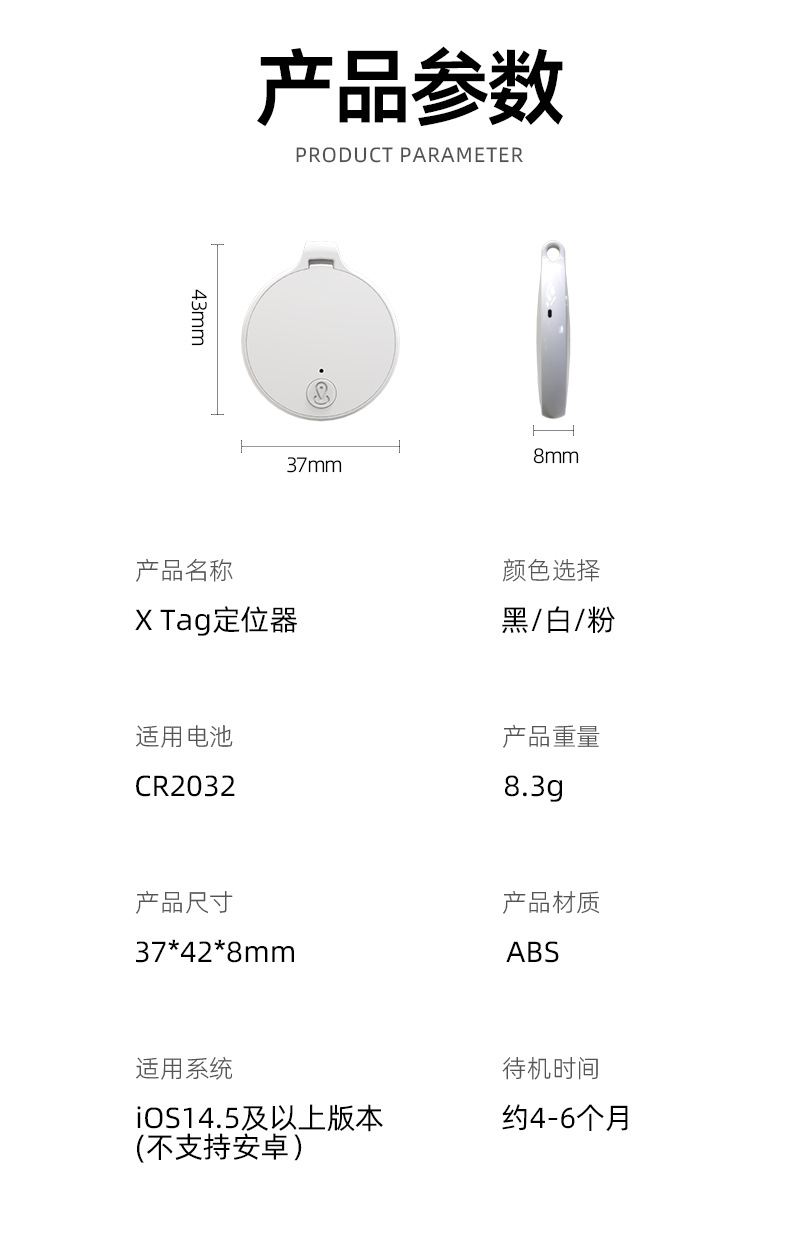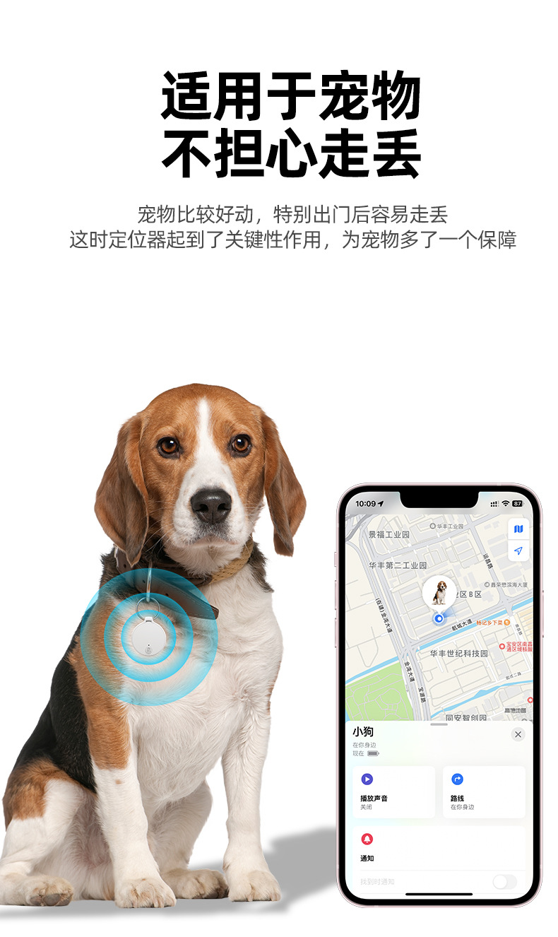 定位原理:定位器搜索附近别人的苹果设备进行加密定位并且发送信号到iCloud服务器上,自己手机就可以看到防丢器的位置以实现超远定位