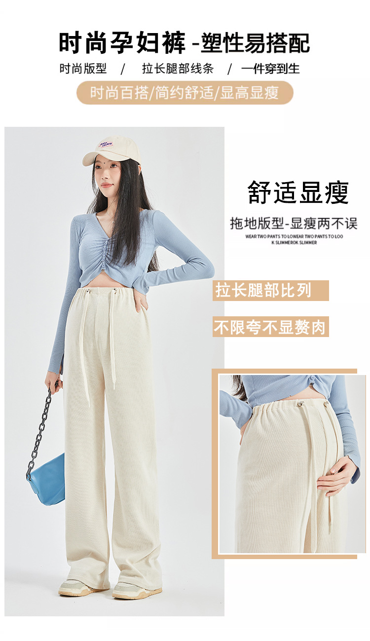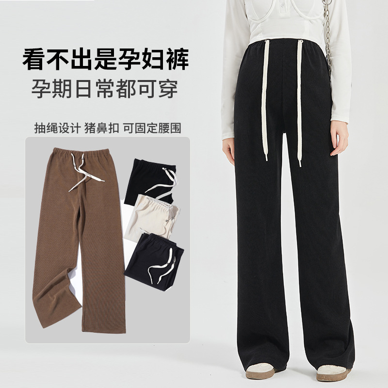 Брюки для беременных, весенне-осенняя одежда без поддержки живота, повседневные широкие брюки с завязками и высокой талией, свободная модная одежда для беременных больших размеров для похудения