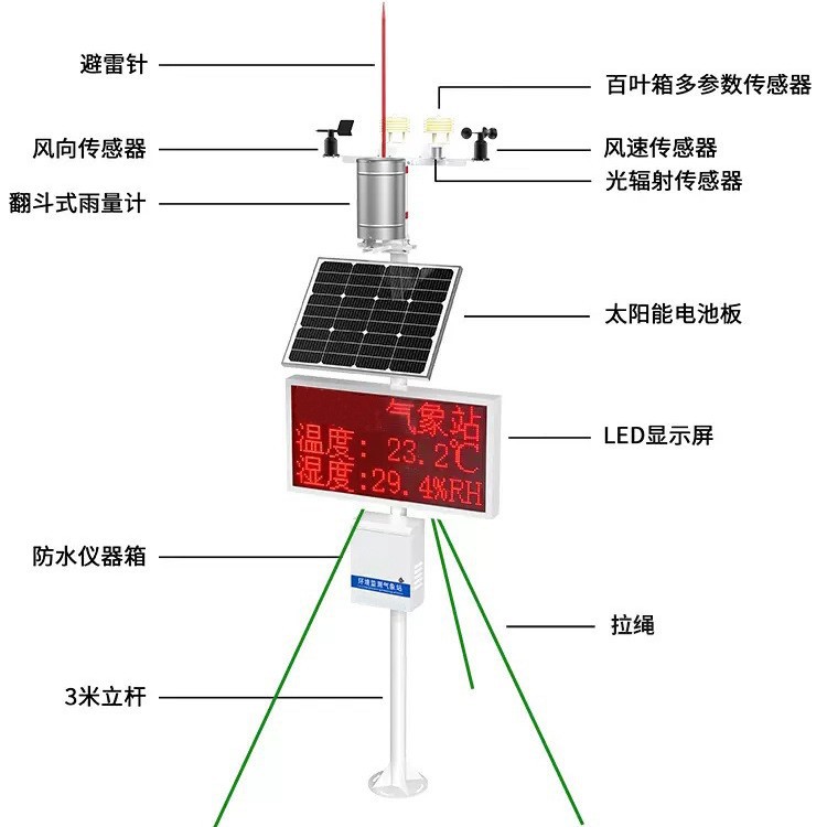 Регулярное издание 6 элементов; Обновленная версия 6 элементов; Температура и влажность коробки жалюзи; Температура, влажность и освещение Жалюзи «Три в одном»; Полиуглеродная скорость ветра; Поликарбоновое направление ветра 16 направлений; Датчик дождя из поликарбона; Изолированная температура и влажность почвы; Изолированный грунт восемь в одном; Сопротивление дождю и снегу; Испаритель