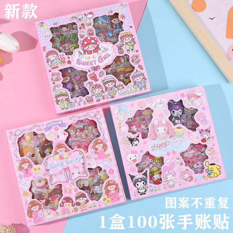 100 штук клубничного медведя Sanrio coolometi Yugui собака пудинг собака пача собака ПВХ в штучной упаковке наклейки на руку