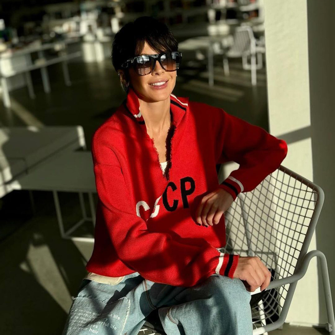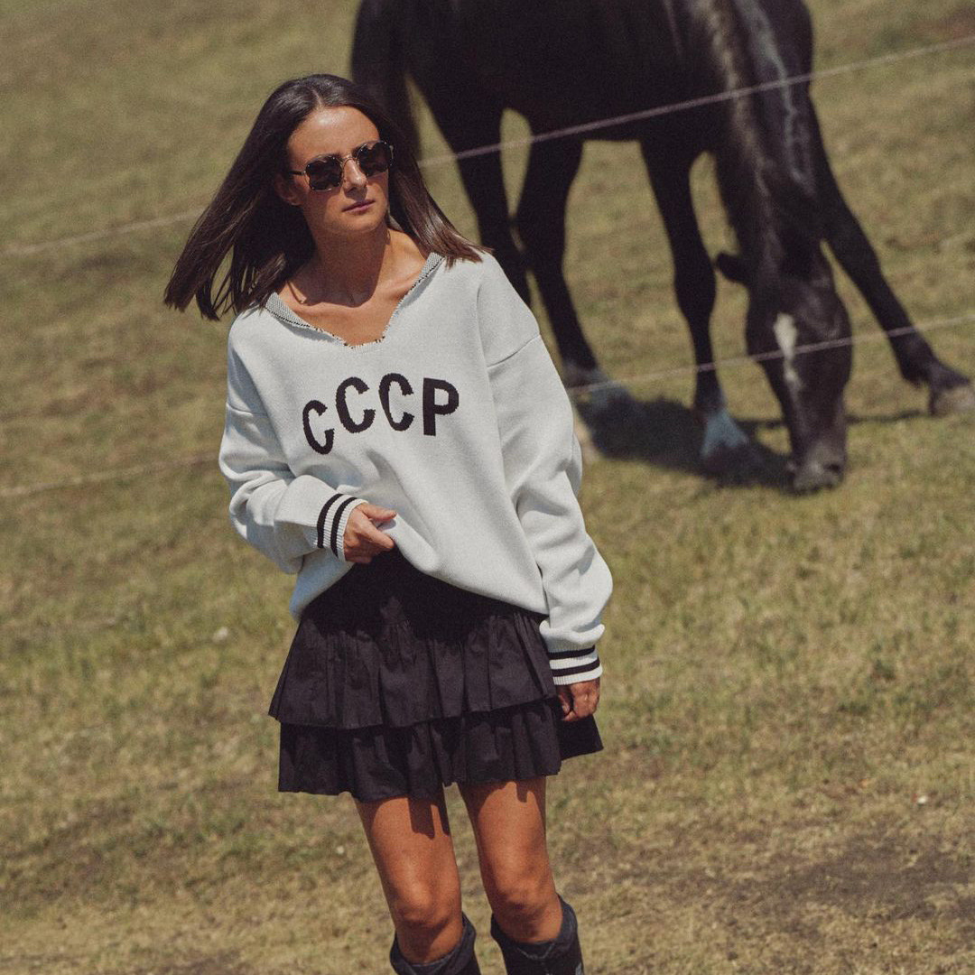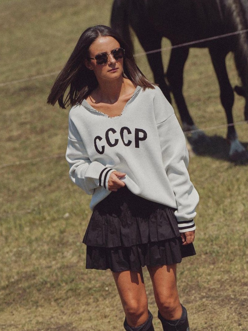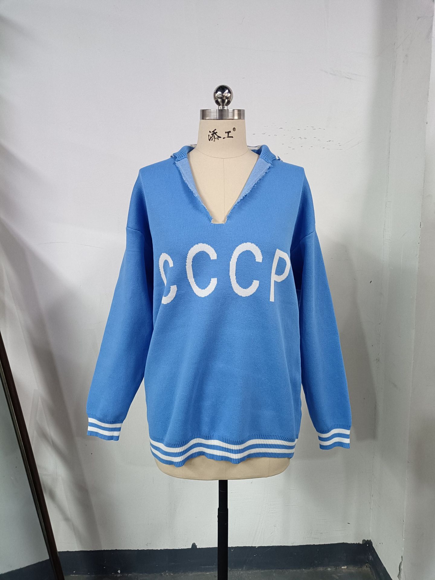 AliExpress нишевый жаккардовый свитер с V-образным вырезом и буквами, женский зимний Повседневный свободный Универсальный пуловер в ленивом стиле