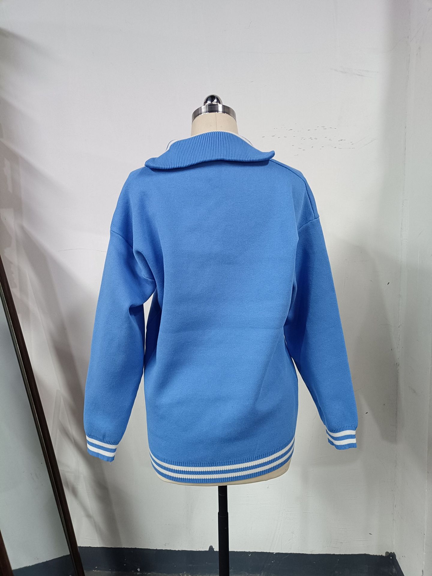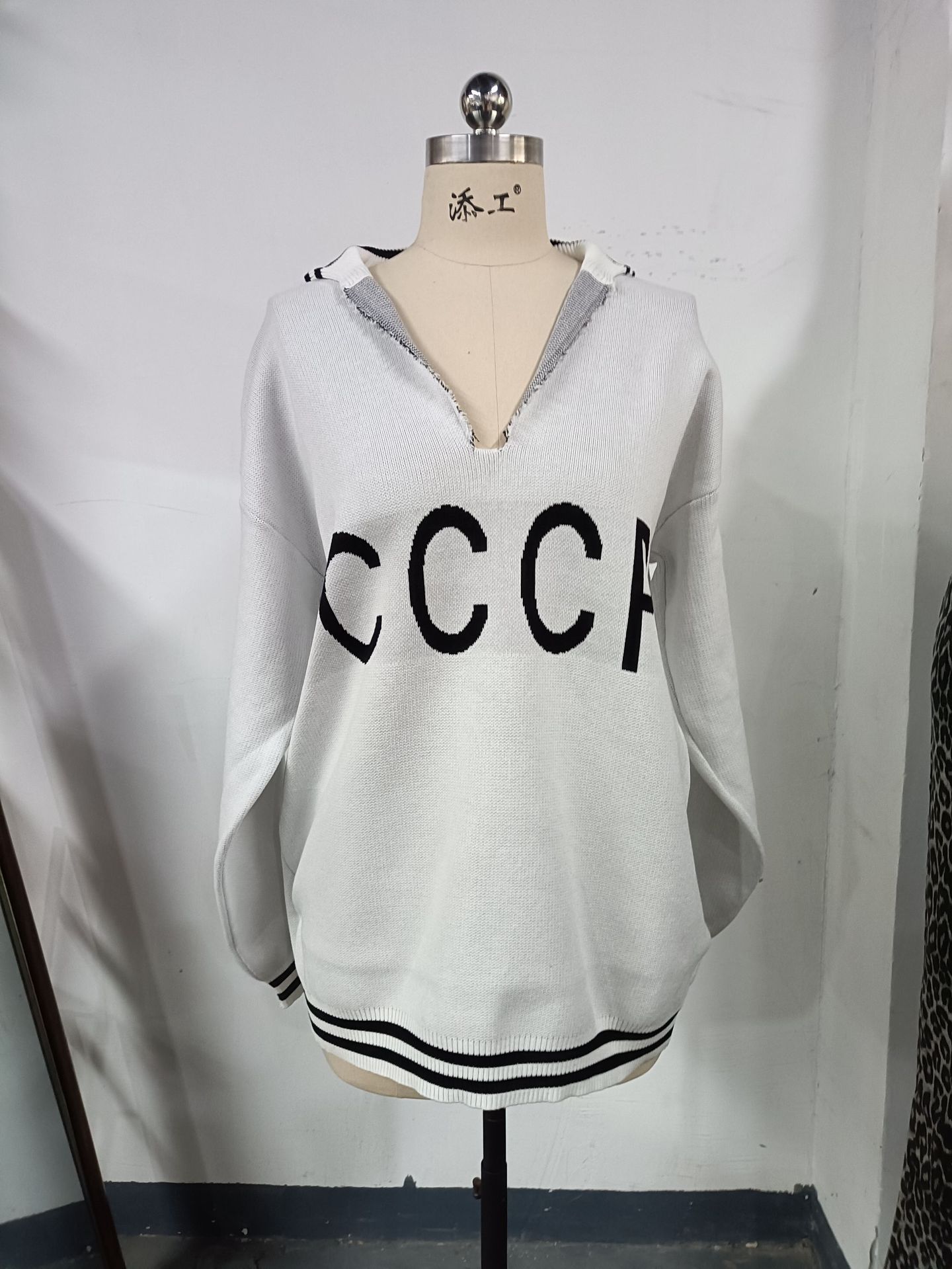 速卖通小众字母提花V领毛衣女冬季休闲宽松慵懒风百搭套头针织衫