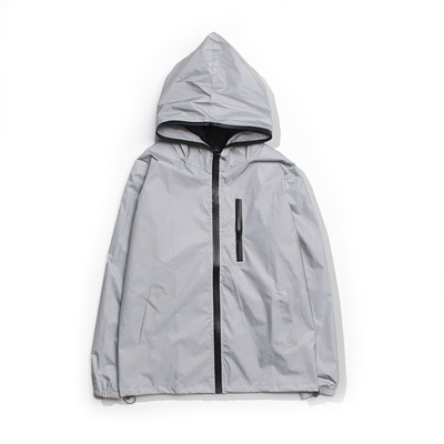 Внешняя торговля взрывные весенние и осенние светоотражающие куртки с капюшоном для мужчин прилив моды для выступления одежды сплошной цвет куртки оптом