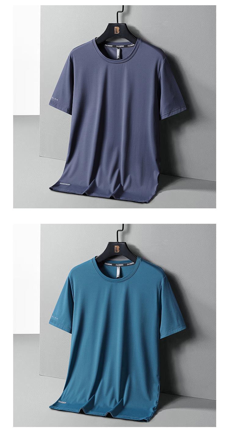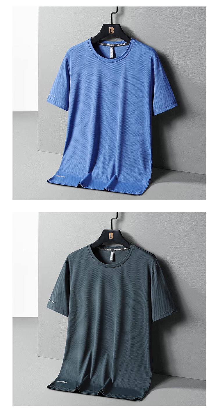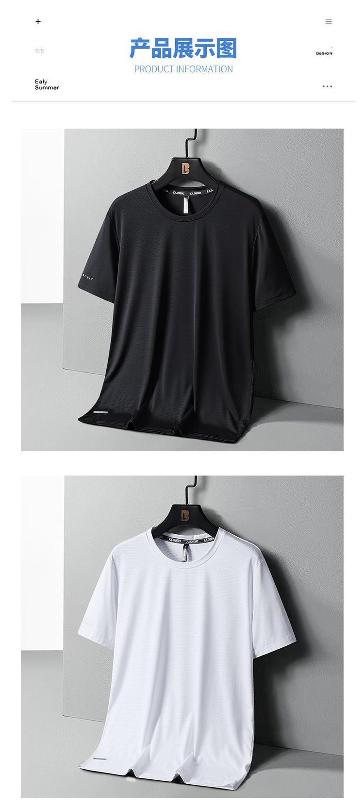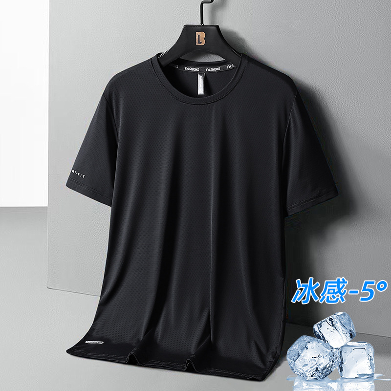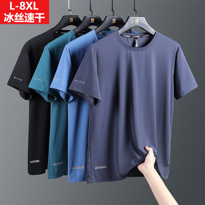 Летняя быстросохнущая футболка из ледяного шелка с короткими рукавами, Мужская свободная дышащая тонкая футболка больших размеров с короткими рукавами, спортивный фитнес-топ