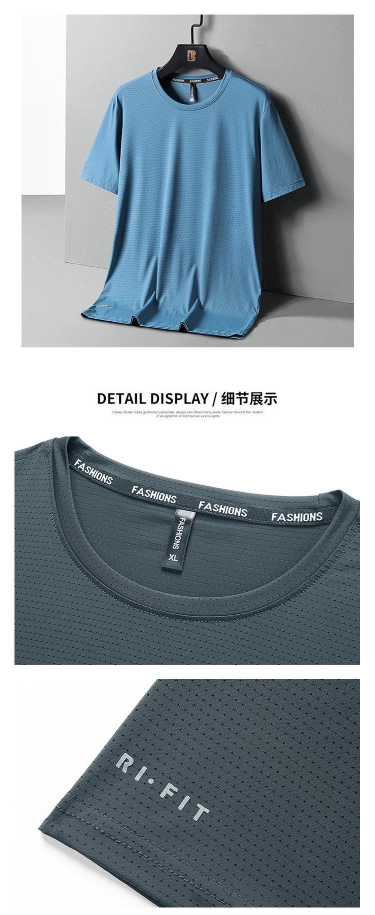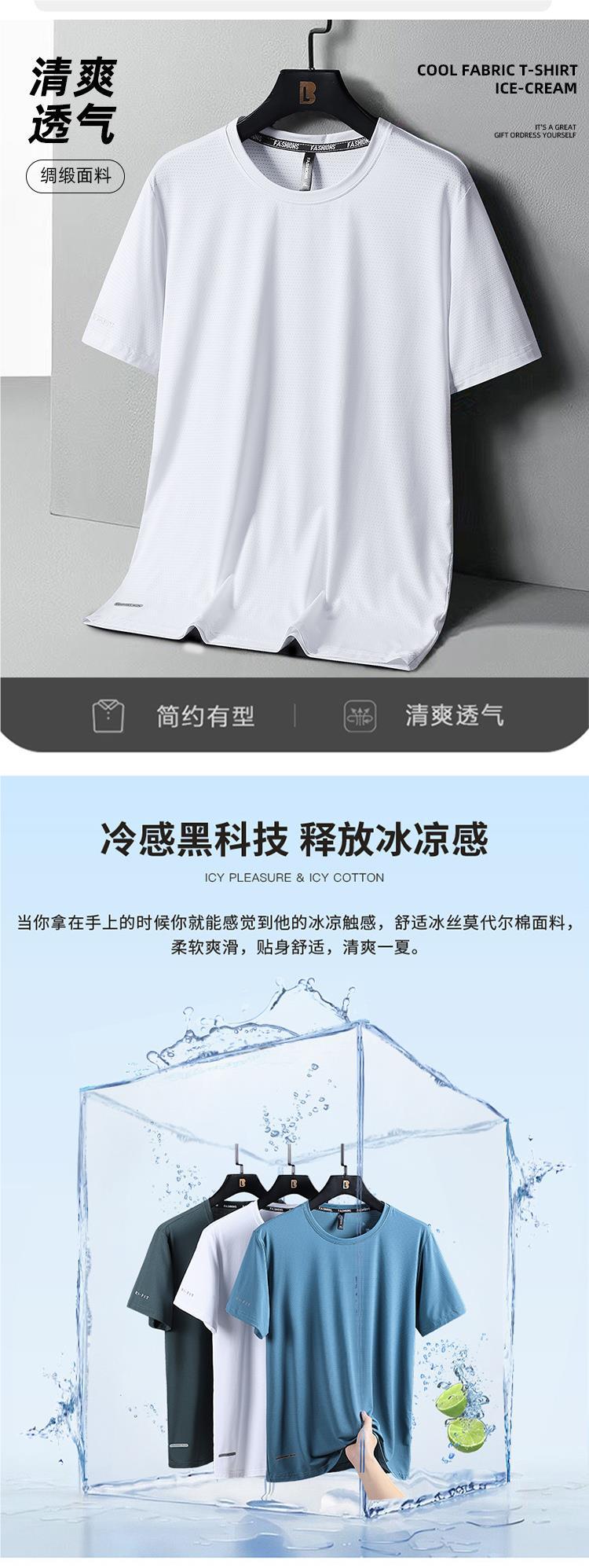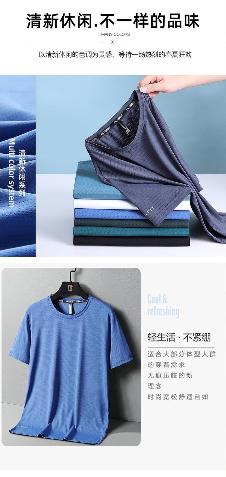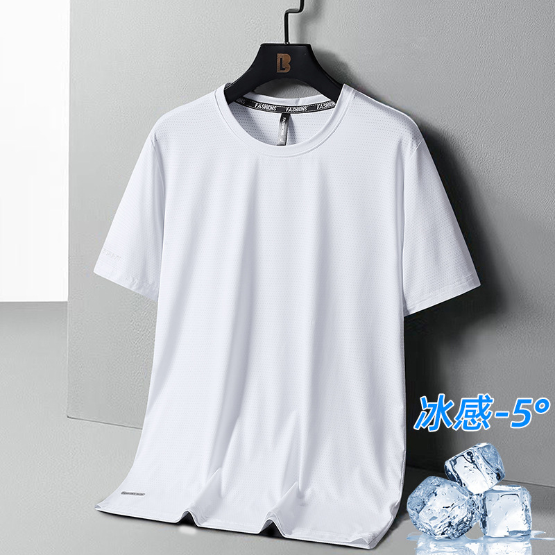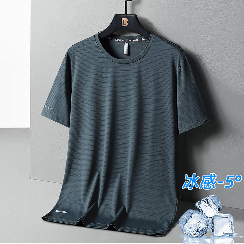 Летняя быстросохнущая футболка из ледяного шелка с короткими рукавами, Мужская свободная дышащая тонкая футболка больших размеров с короткими рукавами, спортивный фитнес-топ
