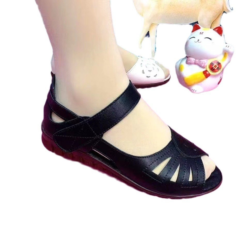 Женские сандалии 2024 года, новые летние женские сандалии, обувь для мам, пляжная обувь на плоской подошве с говяжьим сухожилием, с мягкой подошвой для среднего и пожилого возраста