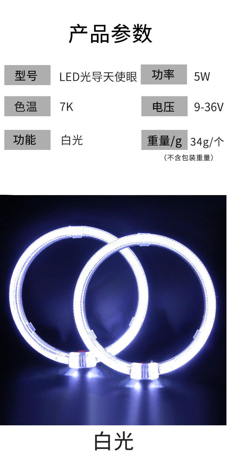 Светодиодный световод ангельский глаз 2 провода 12 В безводная модель толстая