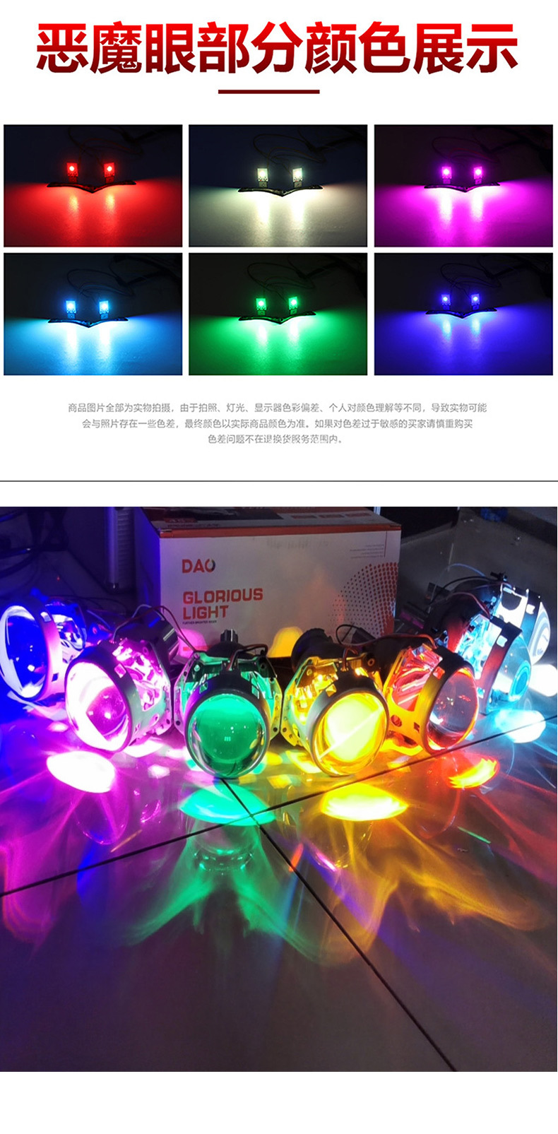 Трансграничные горячие продажи Оптовая продажа H1 Demon Eye 2.5-дюймовый автомобильная линза модифицированная RGB монохромная модель крутая 360 Demon Eye