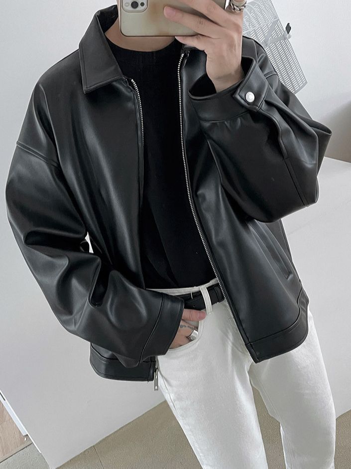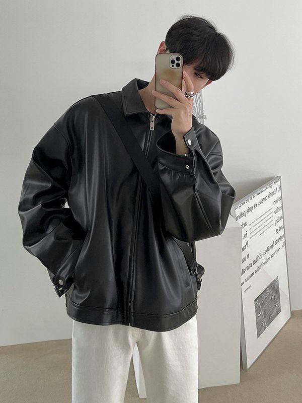 Кожаное пальто для мужчин 2023 зимний новый тренд