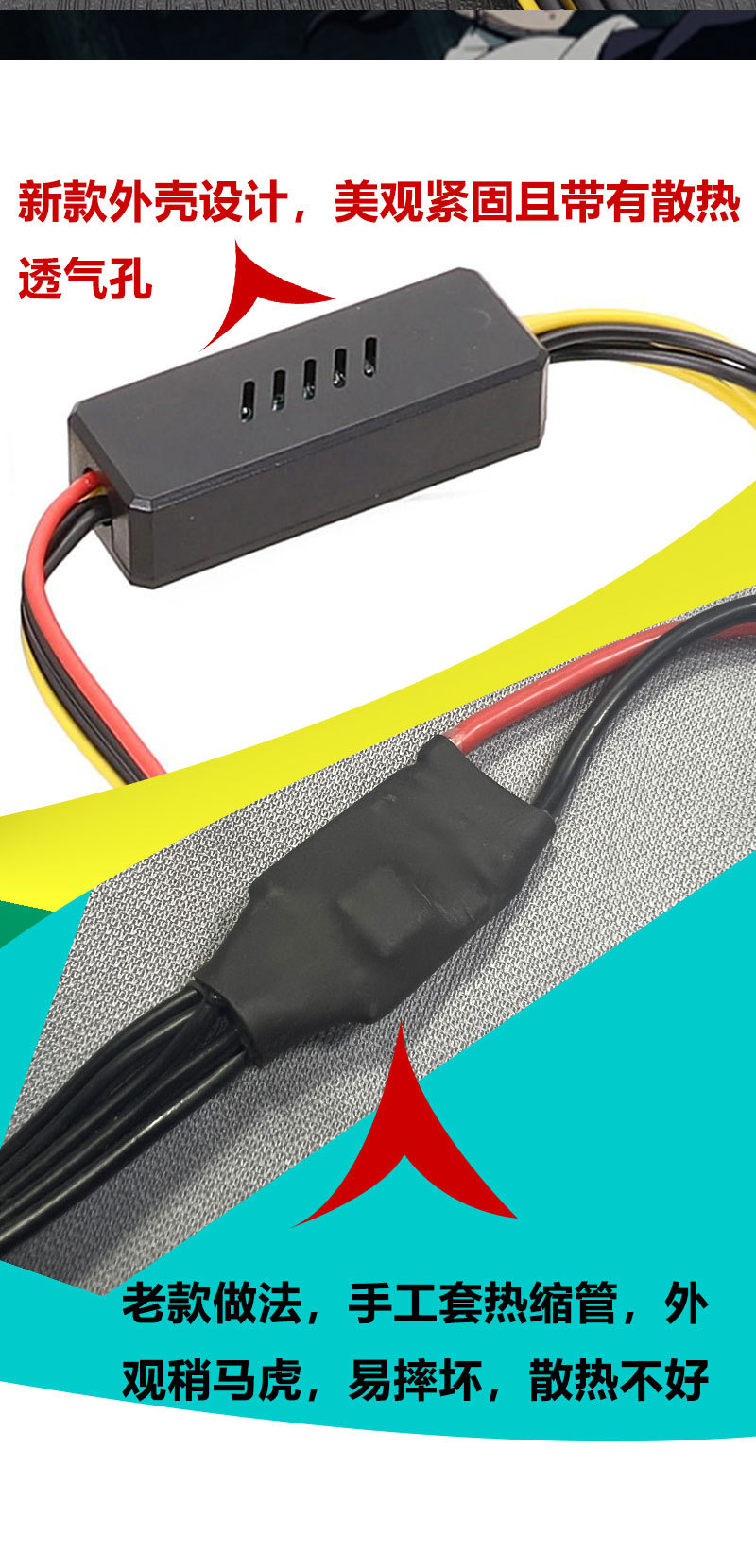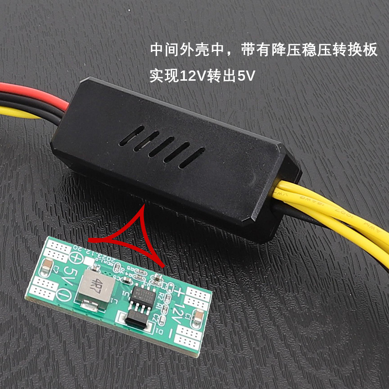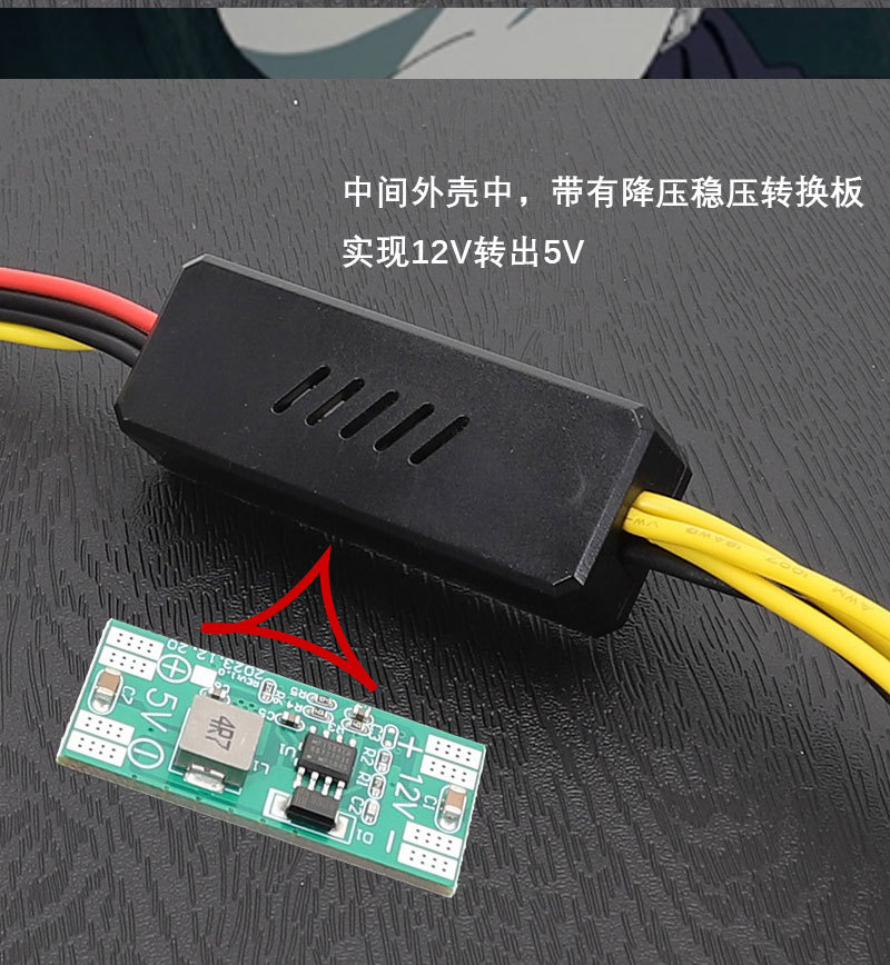 线中间外壳中,带有降压稳压转换板,实现12V转出5V