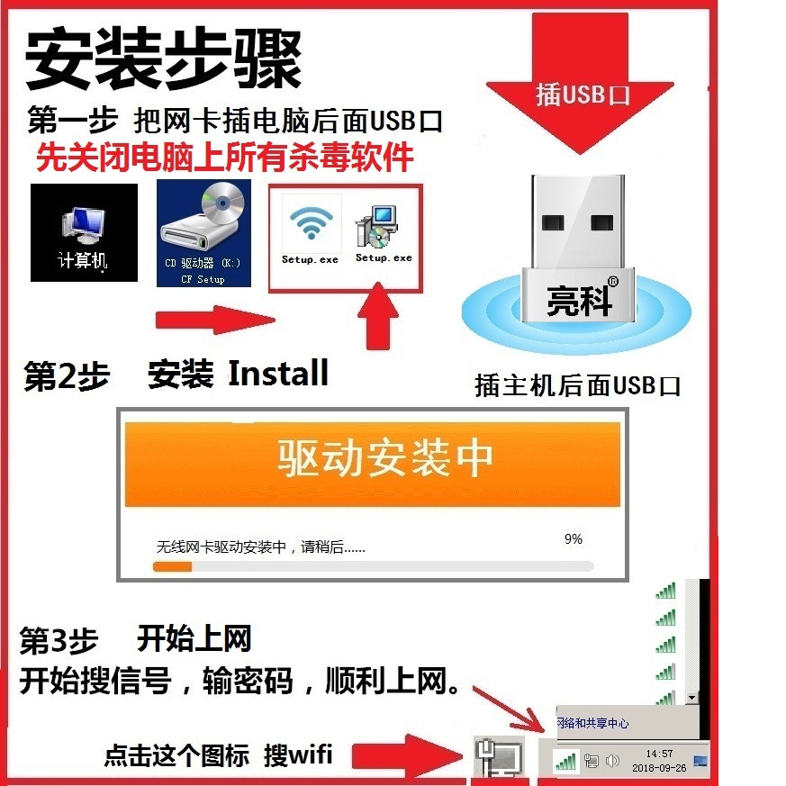 Беспроводная карта USB 150M Mini Wi-Fi сетевой передатчик приема сигнала Настольный компьютер ноутбук