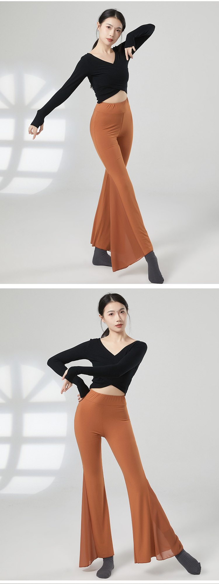 Классический танцевальный костюм женские танцы элегантные черные Модальные Брюки Одежда для современных танцев драпировка штаны для тренировки рожка