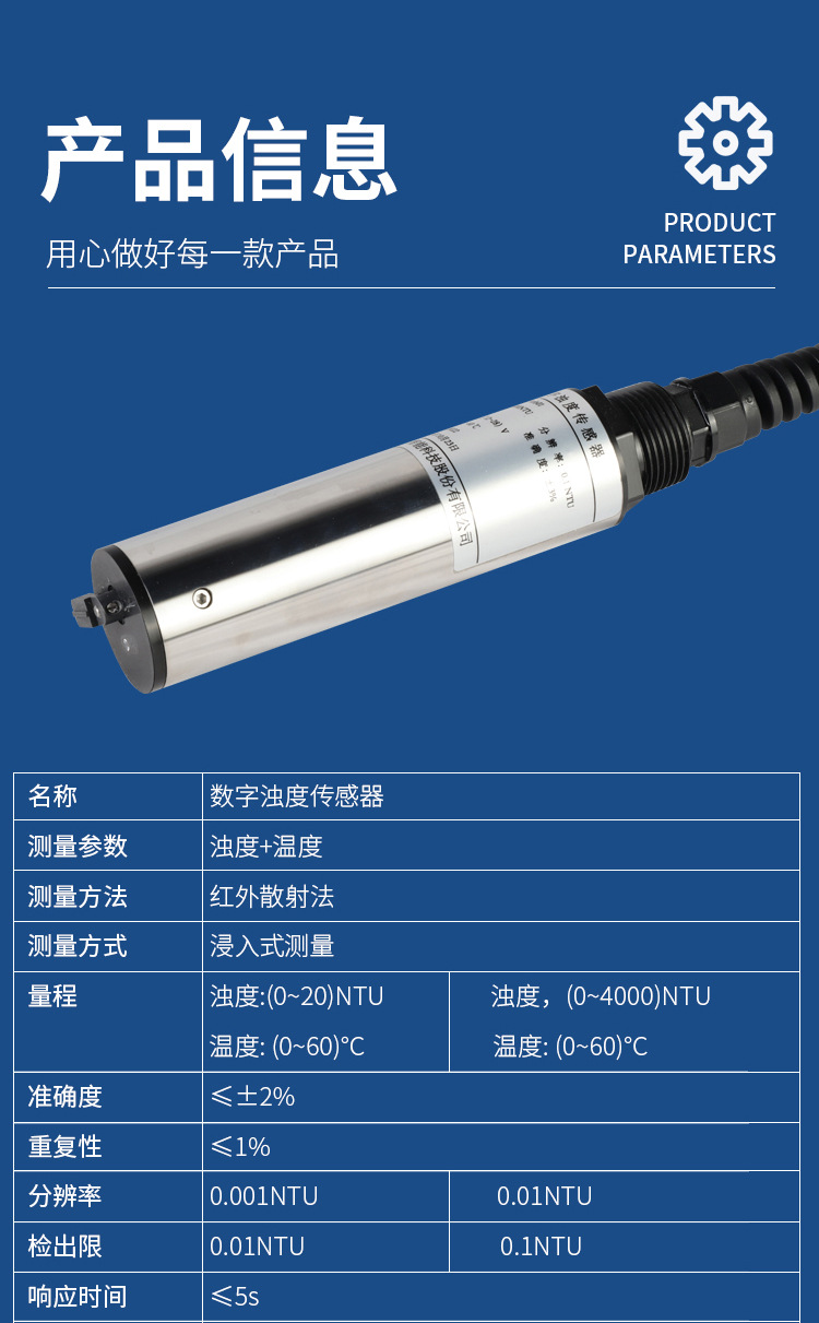 Цифровой Датчик Мутности; Передатчик с одним параметром; Комплект обнаружения (Цифровой Датчик Мутности + однопараметрический контроллер); Свяжитесь со службой поддержки клиентов для получения индивидуальных спецификаций